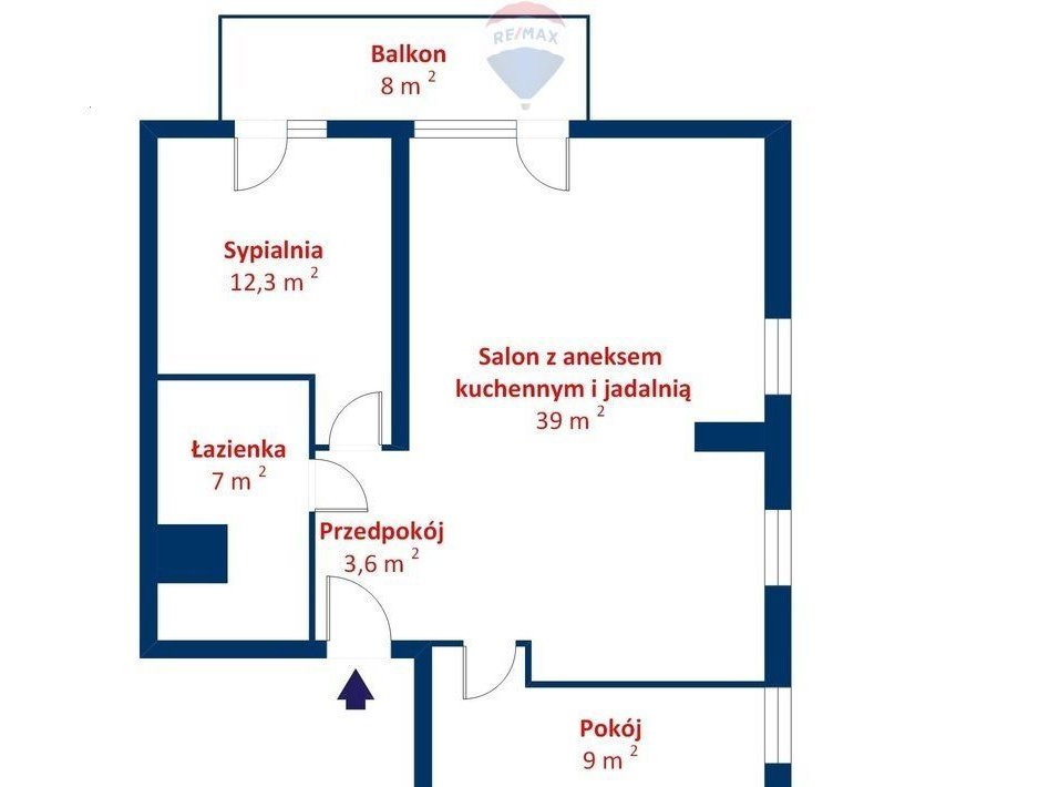• balkon (ok. 8 m2, wejście z salonu i jednej z sypialni);
