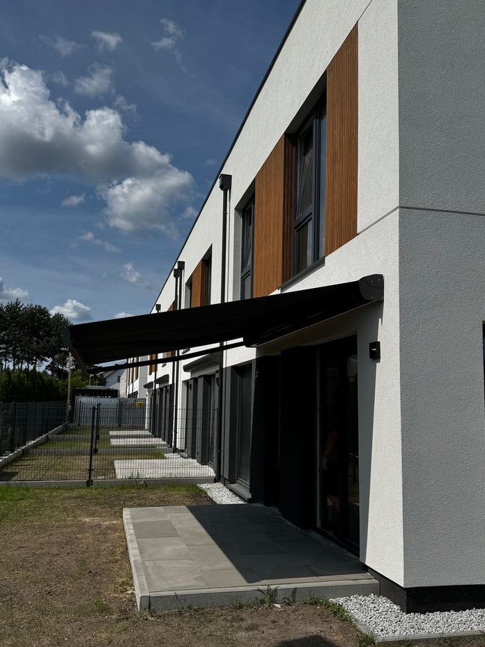 - na ogrodach wykonano tarasy oraz zamontowano zewnętrzne markizy,