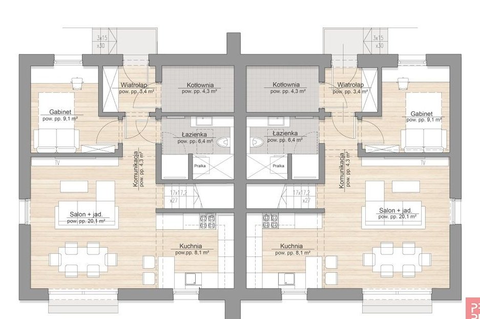 Zapraszamy do zakupu jednego z **6 domów jednorodzinnych w zabudowie bliźniaczej**, zlokalizowanych na kameralnym osiedlu w otoczeniu zieleni, tuż przy **lesie Zabierzowskim**.