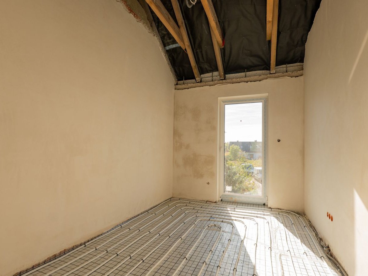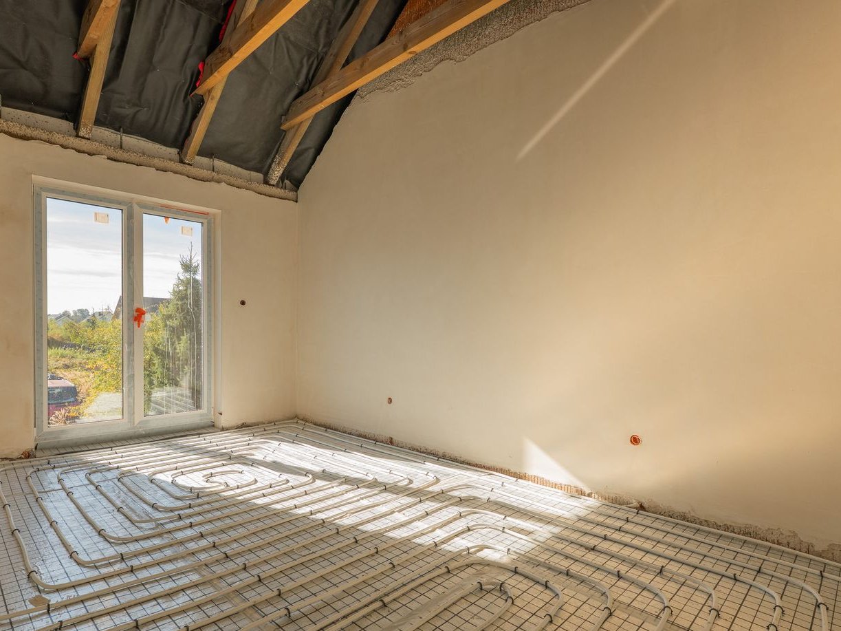 ogrzewanie gazowe z piecem dwufunkcyjnym i ogrzewaniem podłogowym w całym budynku,