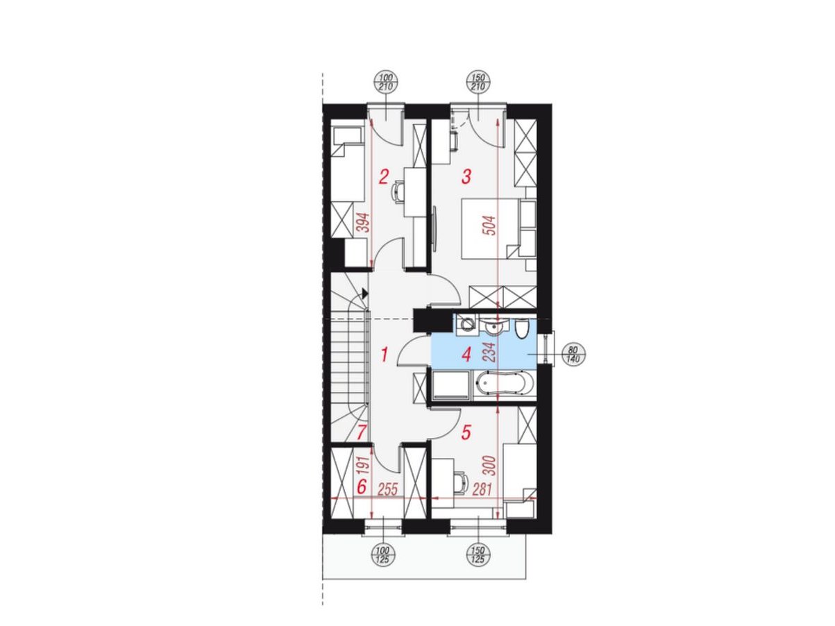 Układ bez skosów zapewnia pełną funkcjonalność wnętrz, a duże przeszklenia gwarantują doskonałe doświetlenie wszystkich pomieszczeń.