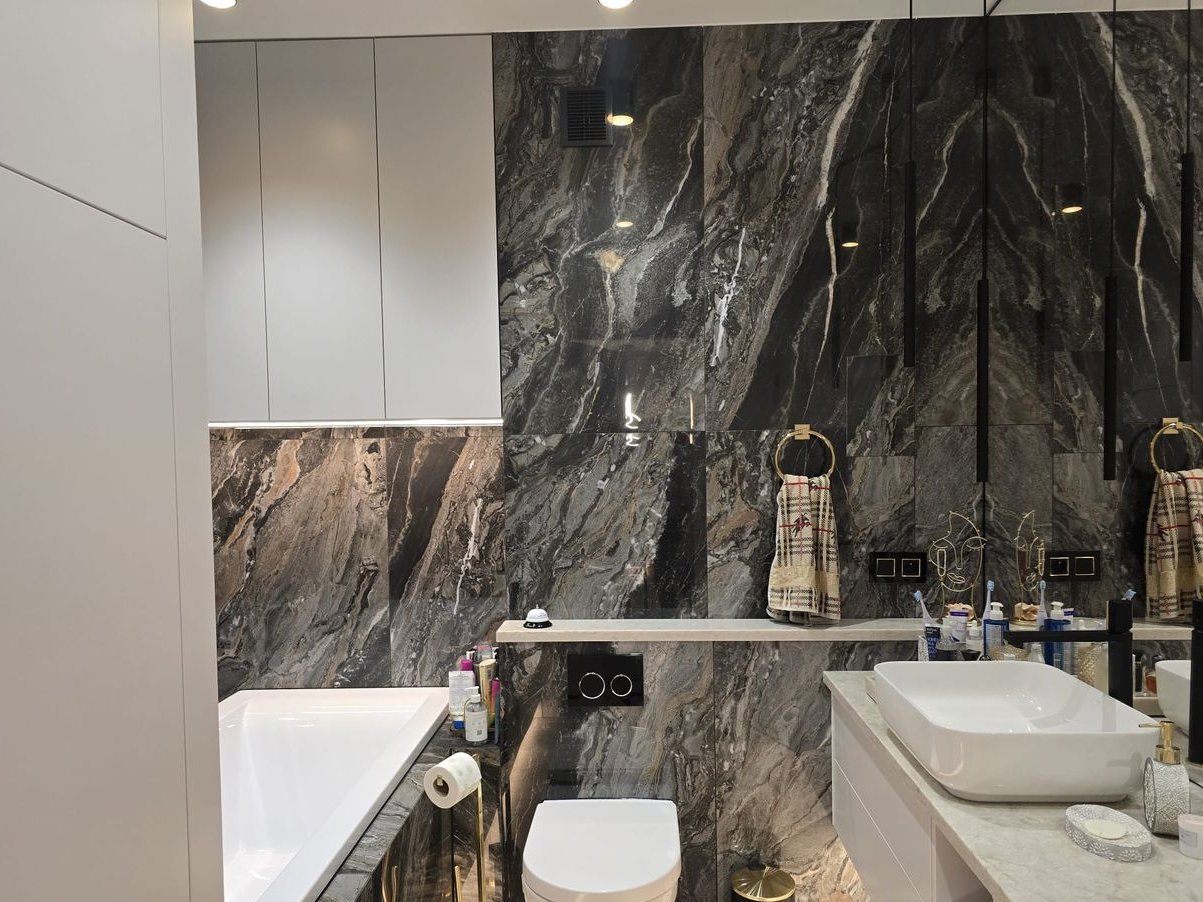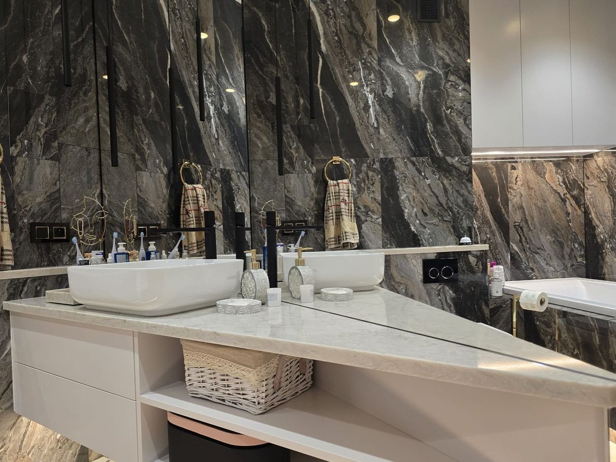 blat w łazience zrobiony z kwarco-granitu