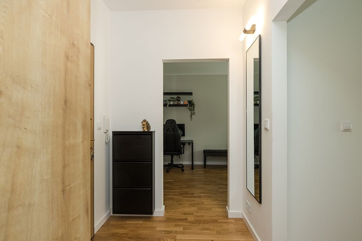 To mieszkanie zostało zaprojektowane dla osób, które cenią nowoczesny styl, wysoką jakość wykończenia i komfort codziennego życia, ale nie chcą rezygnować z ciszy i przestrzeni. Funkcjonalny układ z oddzielną kuchnią, starannie zaprojektowane zabudowy stolarskie oraz gotowość do natychmiastowego wprowadzenia sprawiają, że jest to propozycja dla wymagających – zarówno do zamieszkania, jak i jako bezpieczna inwestycja.
