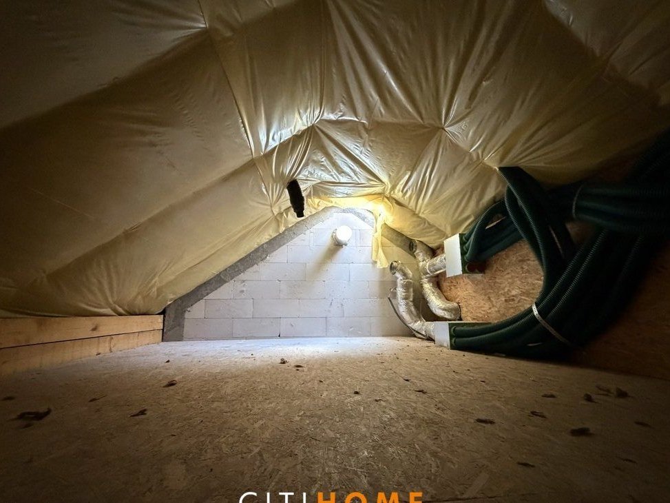Na parterze znajduje się przestronny salon z wyjściem na taras i ogród, otwarta kuchnia, dodatkowy pokój idealny na gabinet, łazienka, kotłownia z pralnią oraz garaż. Na piętrze zaplanowano 4 ustawne sypialnie oraz dużą łazienkę. Dodatkowym atutem jest możliwość zagospodarowania strychu.