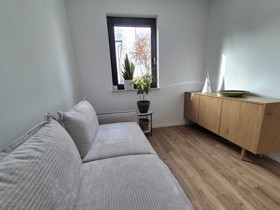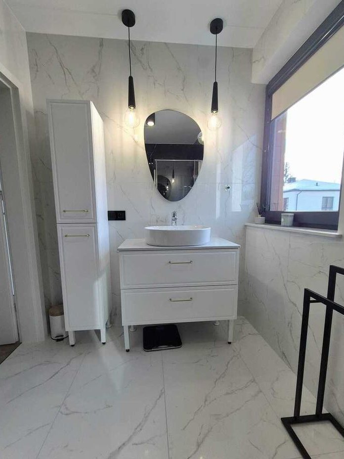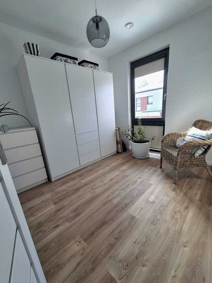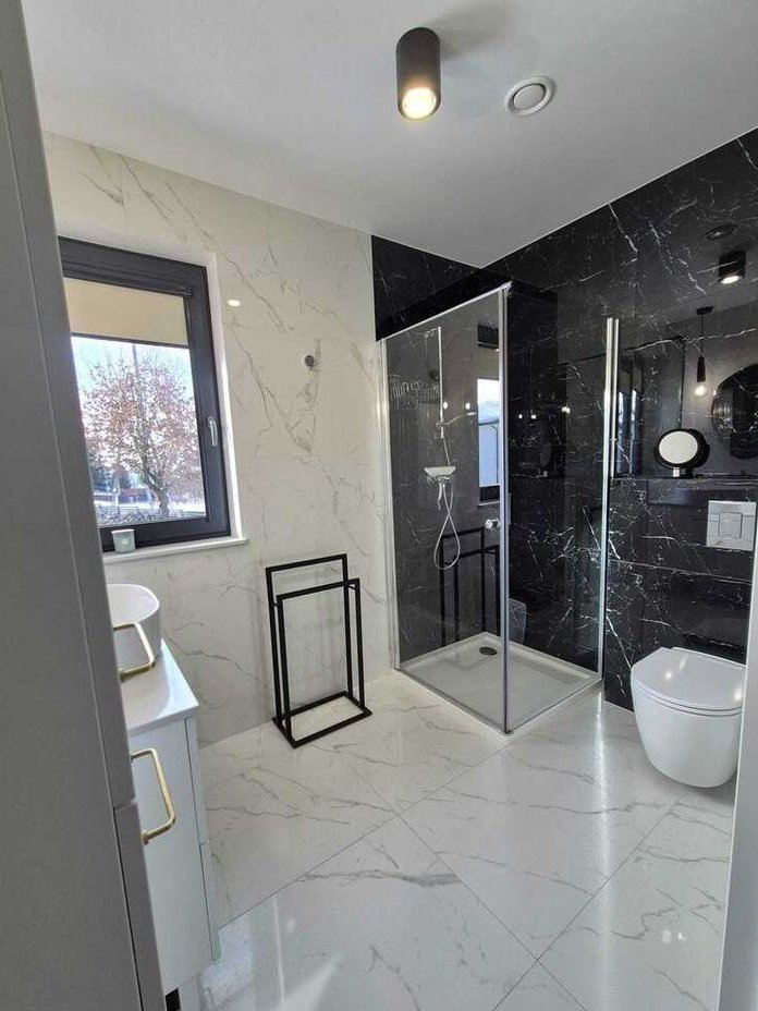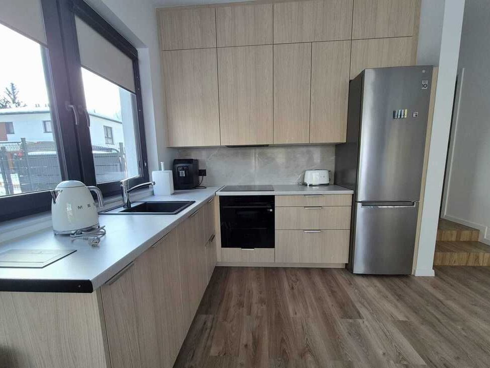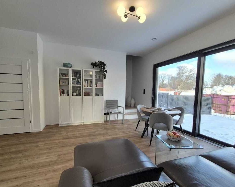 Wykończony w 2025 roku, dom o powierzchni 94 m² składa się z 5 pokoi, co zapewnia przestrzeń do życia i pracy. Wykorzystano najwyższej jakości materiały – armatura Grohe, drewniane schody, granitowy blat w łazience. Ogrzewanie nowoczesną pompą ciepła marki York i rekuperacja gwarantują efektywność energetyczną. Dodatkowo wyprowadzono peszle do montażu fotowoltaiki. Na zewnątrz jest możliwość zamontowania stacji ładowania samochodu elektrycznego.