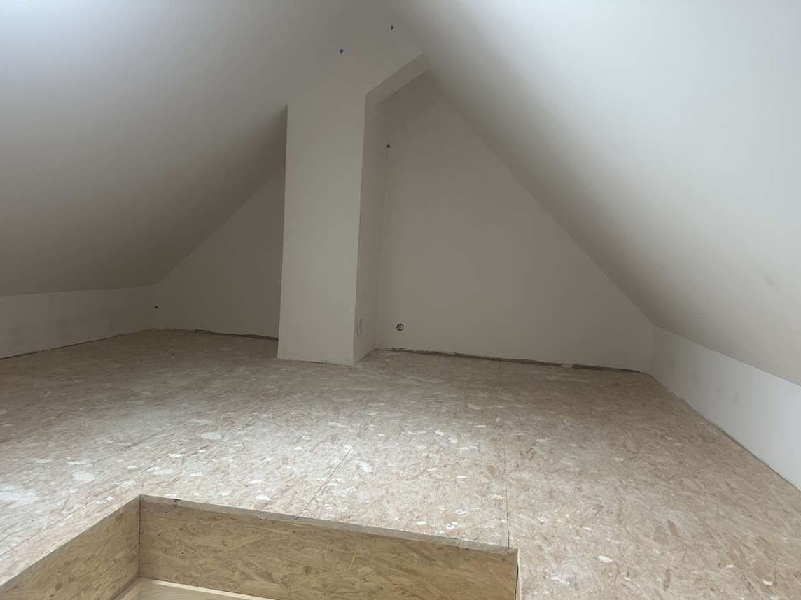 W całym domu został położony tynk na ścianach i sufitach oraz pomalowane farbą gruntującą.
