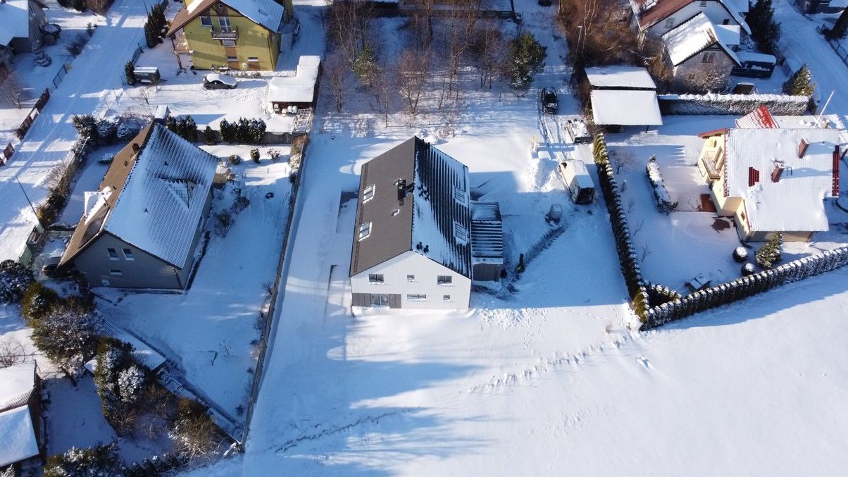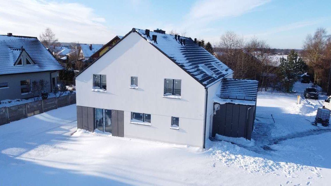 Nowoczesny bliźniak z pompą ciepła, kominkiem i 2 strychami!