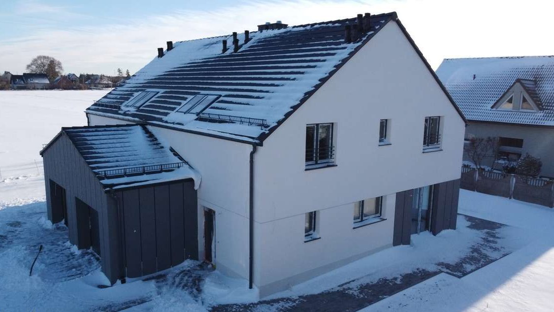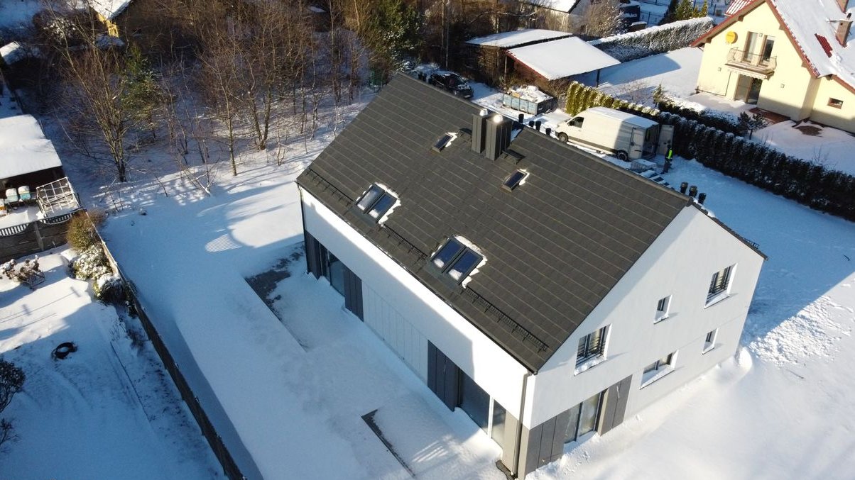 Dach pokryty dachówką betonową, orientacja idealna pod fotowoltaikę