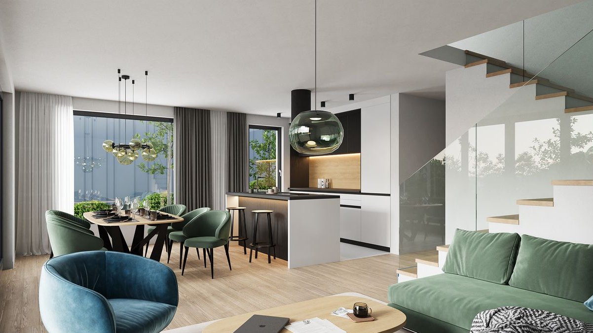 duże przeszklenia i ergonomiczny układ pomieszczeń.