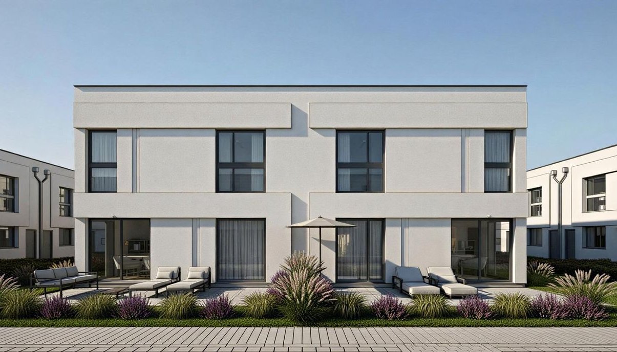 -nowoczesna architektura: płaskie dachy, duże przeszklenia