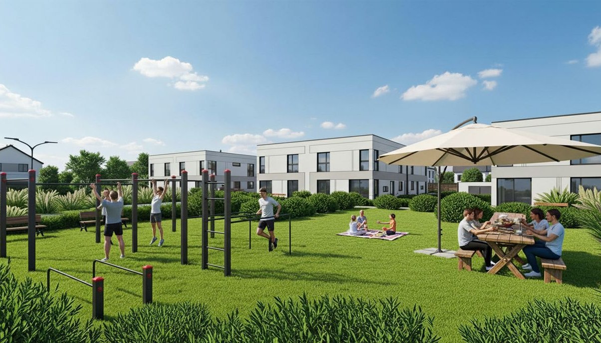 -duży plac rekreacyjny przed osiedlem