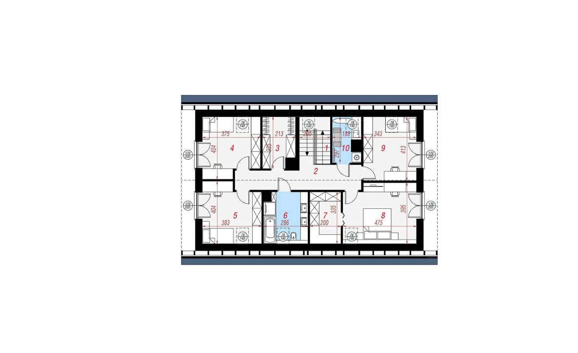 Dach: Dachówka ceramiczna (antracyt), pełne obróbki blacharskie, podbitka z blachy oraz okute kominy.