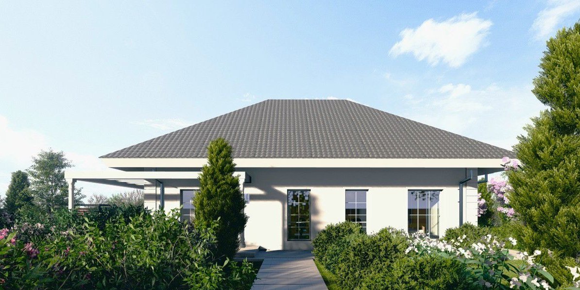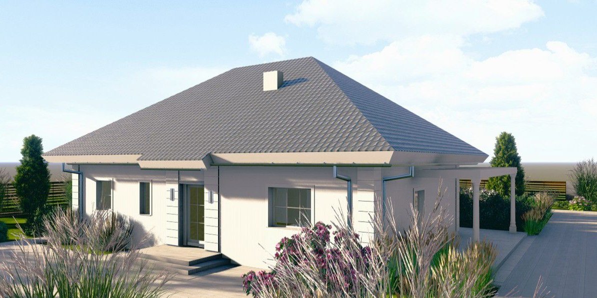 Dach czterospadowy (kopertowy) pokryty blachodachówką – kolor do wyboru