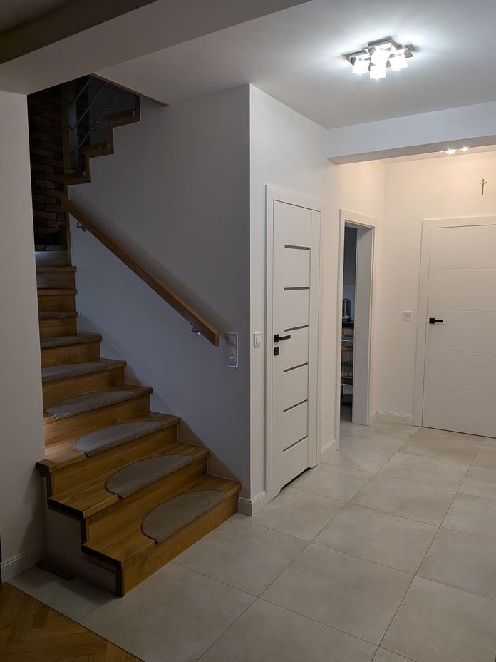Przestronny duży salon z wyjściem na taras. Cicha spokojna okolica. Sąsiedztwo domów jednorodzinnych. Blisko szkoła, żłobek, boisko, przystanek autobusowy oraz w budowie przystanek PKP w odległości 700 m. Doskonały dojazd do autostrady A2, drogi ekspresowej S5 oraz S11. Blisko sklepy Biedronka, Dino.