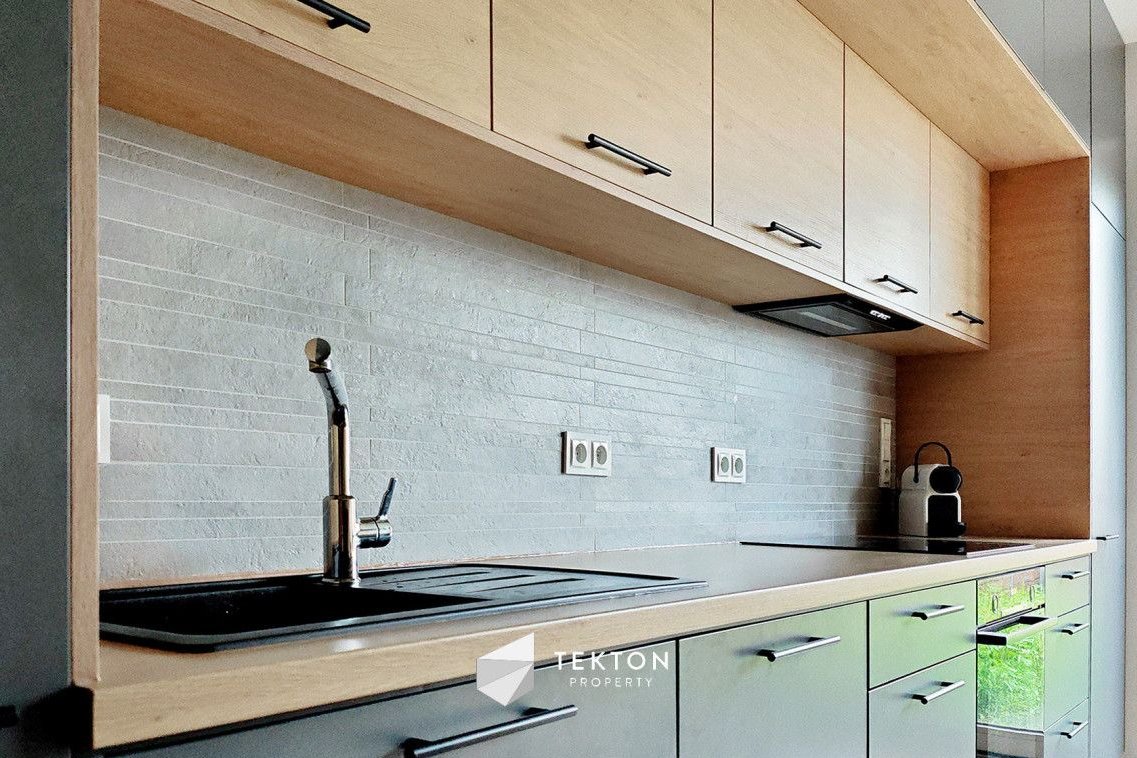 W cenie nieruchomości pozostaje w pełni umeblowana kuchnia, wyposażona w wysokiej klasy sprzęt AGD marek Bosch oraz Franke, w tym piekarnik, płyta grzewcza, zmywarka, okap oraz lodówka.