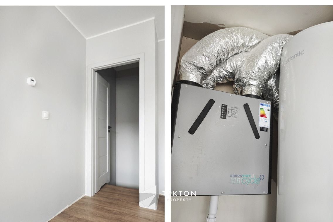 Nieruchomość została wykonana w nowoczesnej technologii niskoenergetycznej. Dom jest całkowicie bezczynszowy - właściciel ponosi wyłącznie koszty mediów oraz bieżącej eksploatacji. Zastosowano inteligentne ogrzewanie podłogowe oraz wentylację mechaniczną z rekuperacją. Budynek posiada doskonałą izolację termiczną i akustyczną, a jego konstrukcja umożliwia montaż paneli fotowoltaicznych bez konieczności uzyskiwania zgody sąsiadów.
