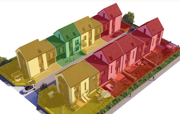 Proponowany w ogłoszeniu dom ma ogródek o powierzchni 54 m2. Jest środkowym domem. Na zdjęciu w galerii zaznaczony na zielono. Pozostałe domy w tej inwestycji są już z opłaconą rezerwacją lub sprzedane.