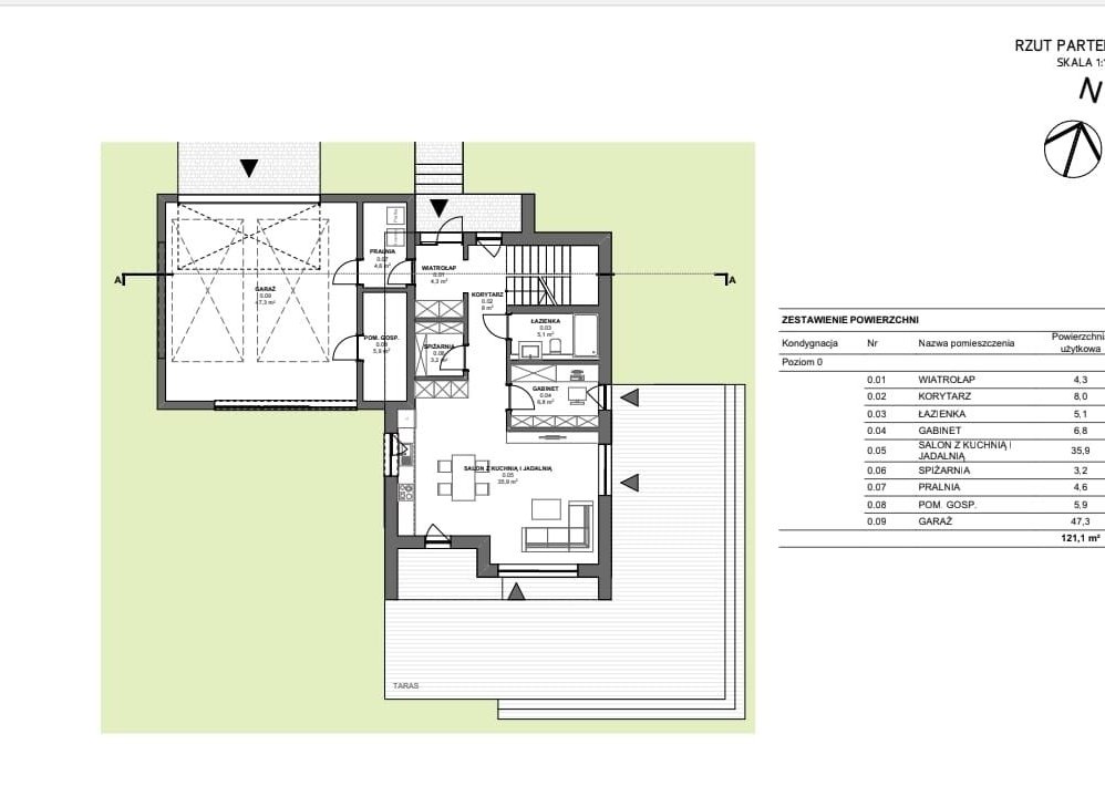 Parter (121 m²):