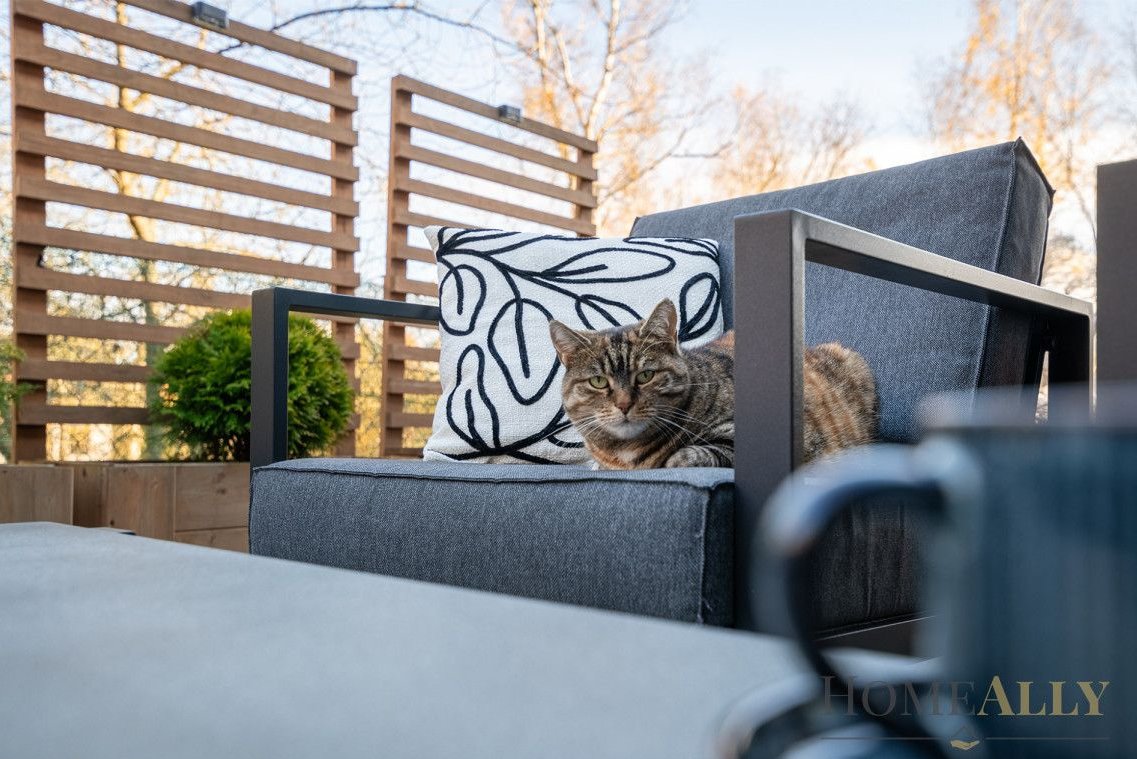 Z salonu jest wyjście bezpośrednio na taras, który nawet w najbardziej upalne dni jest idealnym miejscem do wypoczynku w cieniu, dzięki automatycznie rozwijanej markizie.