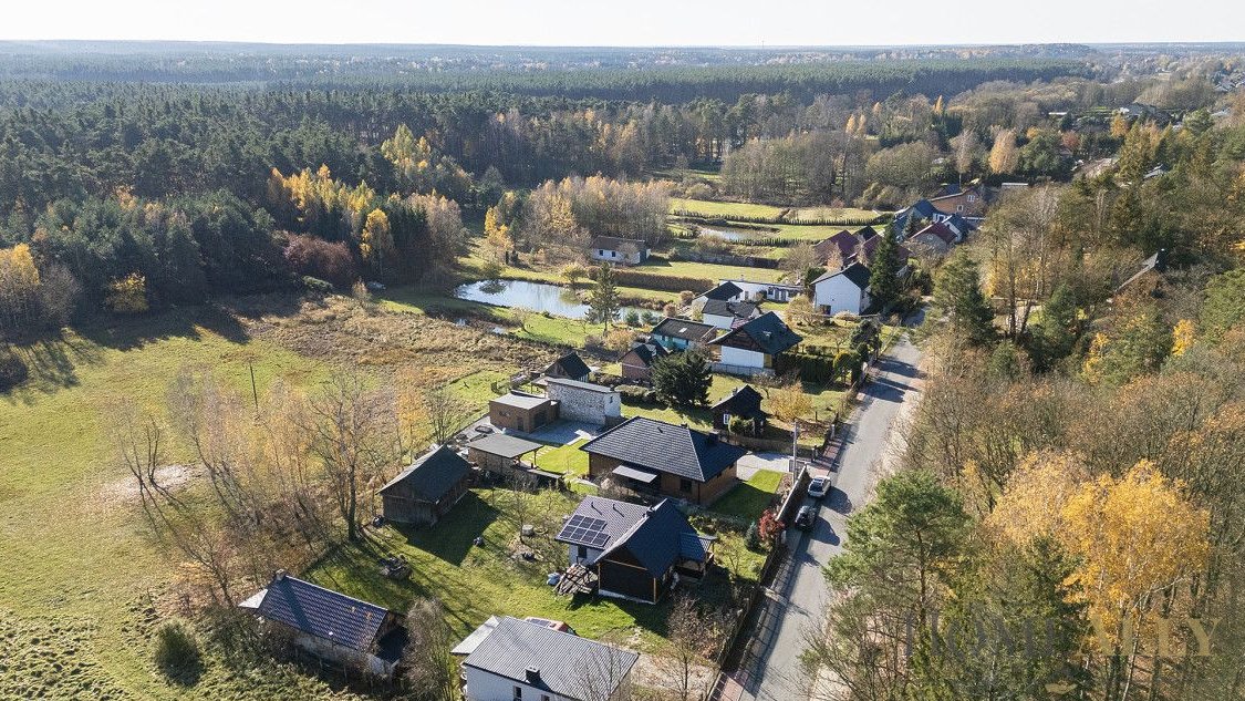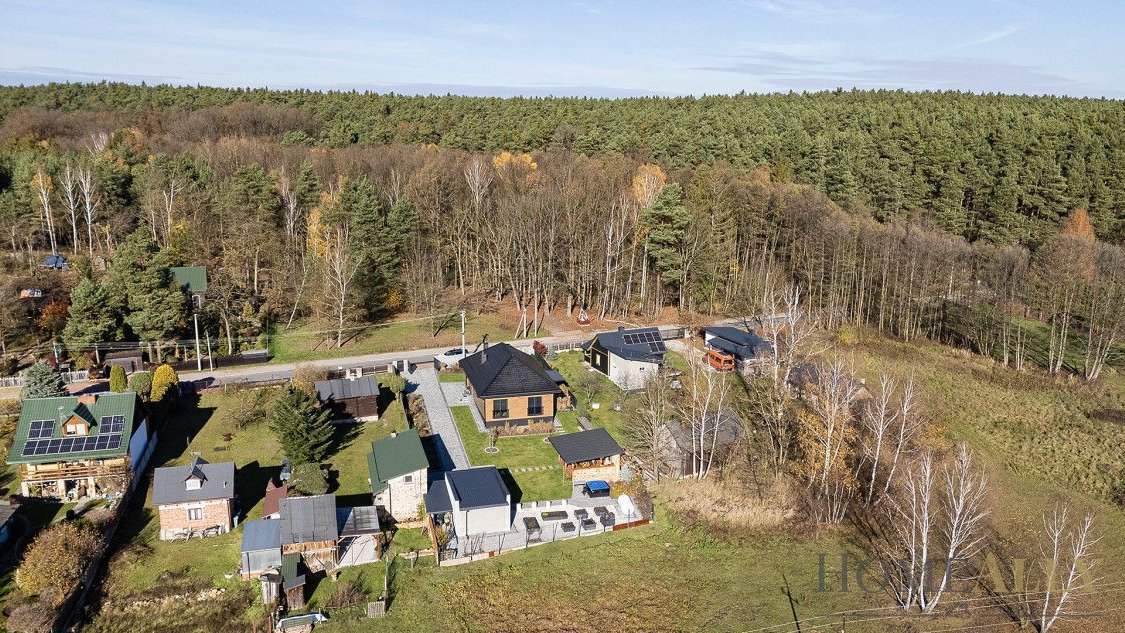 Dom został wybudowany w 2022 roku - może być użytkowany jako całoroczny lub tylko na krótki weekendowy odpoczynek. Działka ma powierzchnię 1094 m2 a na jej skraju znajduje się furtka, która prowadzi bezpośrednio na rozległe tereny zielone wzdłuż Pilicy.