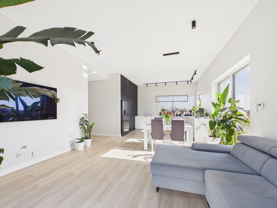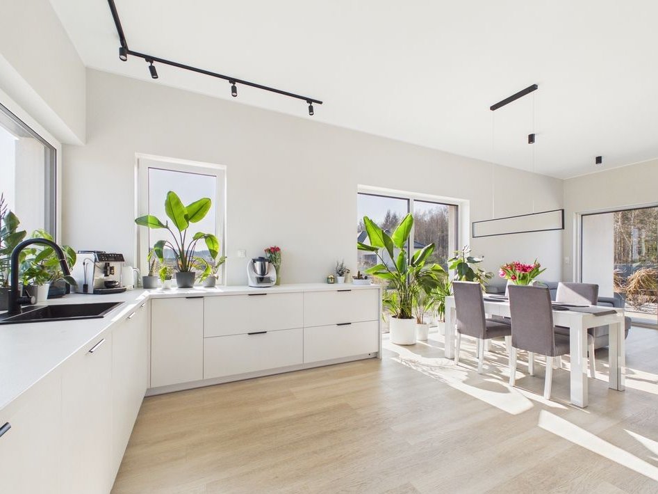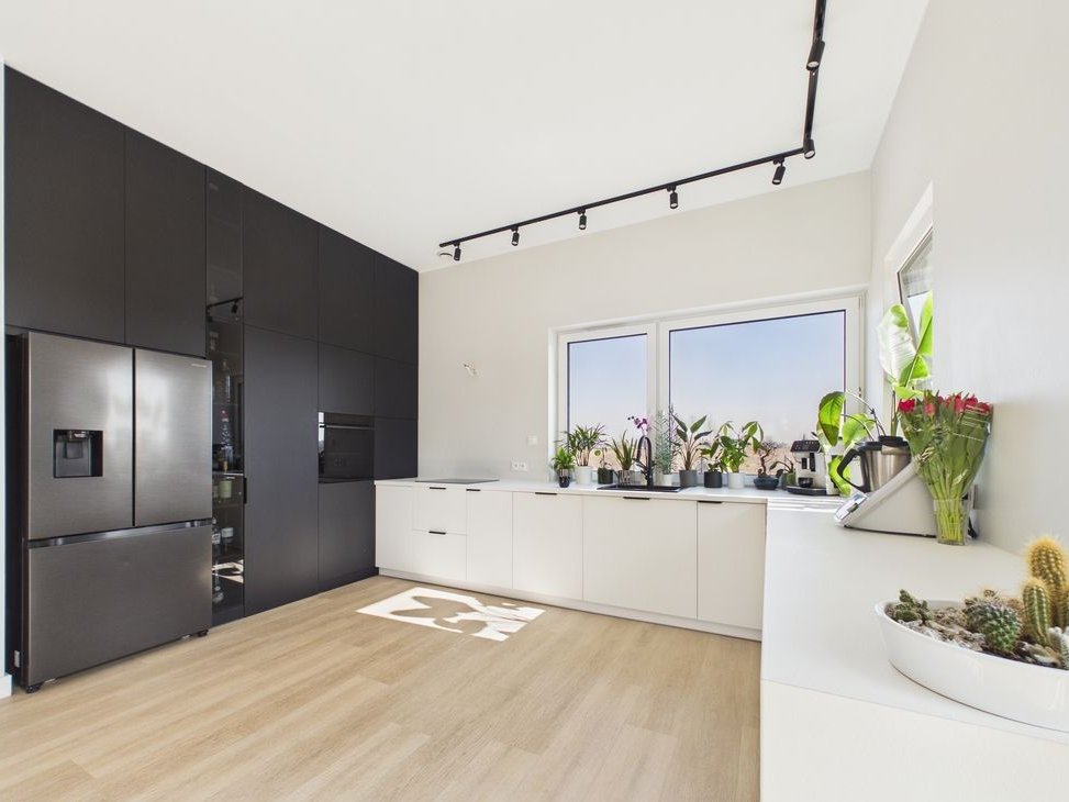- otwarta kuchnia (ze spiżarnią, schowaną za jakościową zabudową), wyposażona w wysokiej jakości sprzęty (płytę indukcyjną, piekarnik, zmywarkę, dużą lodówkę z zamrażarką)