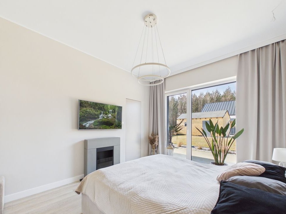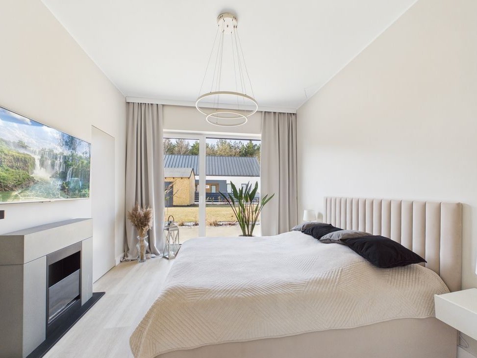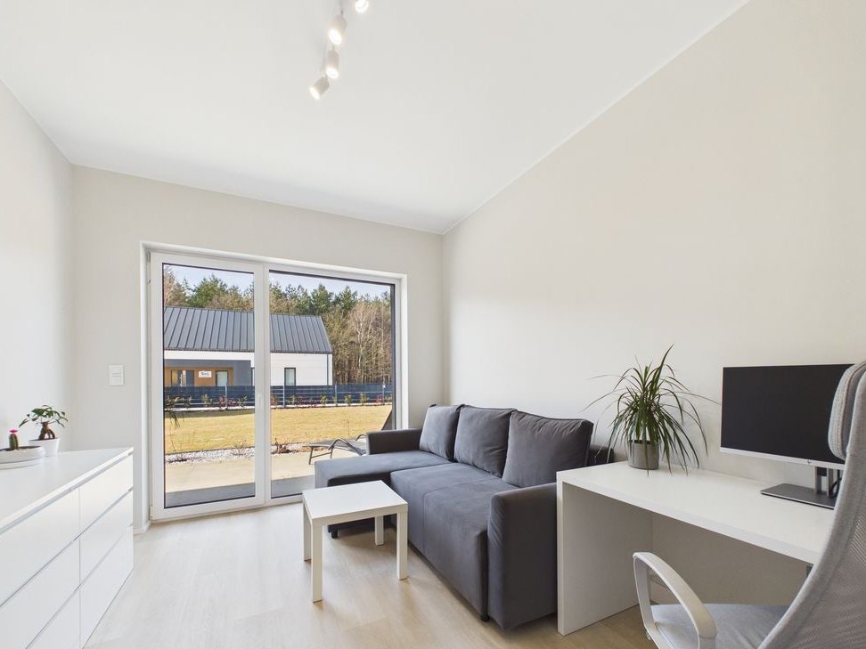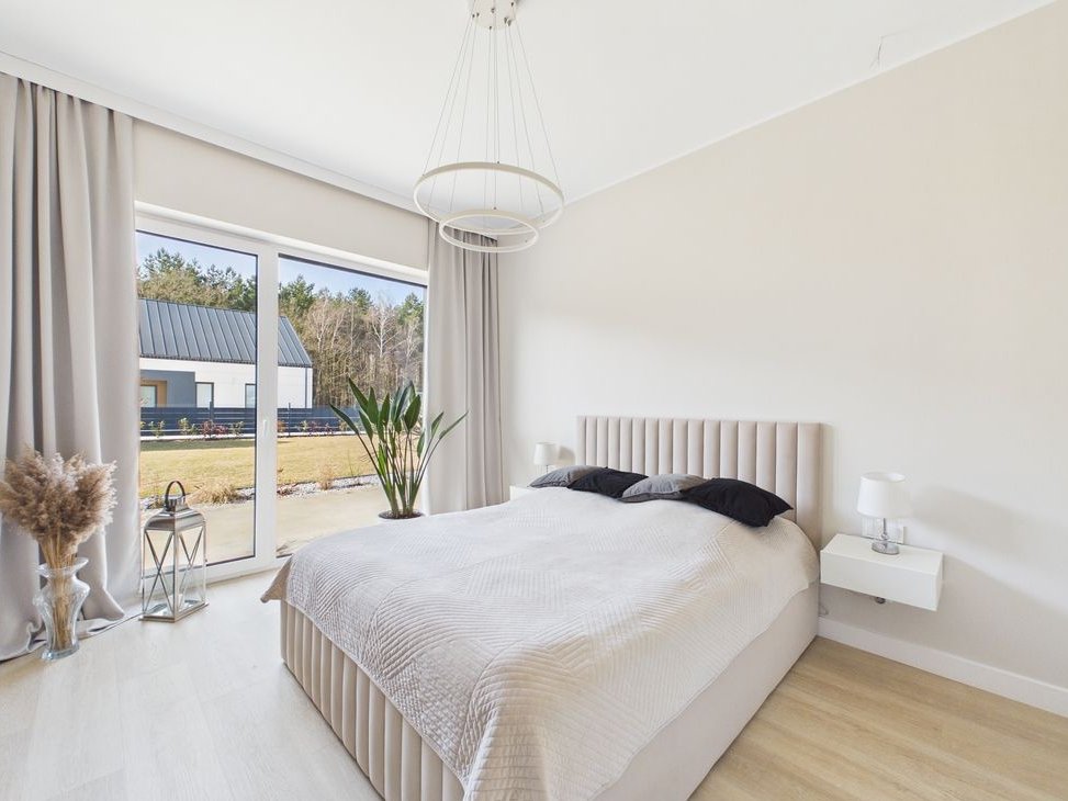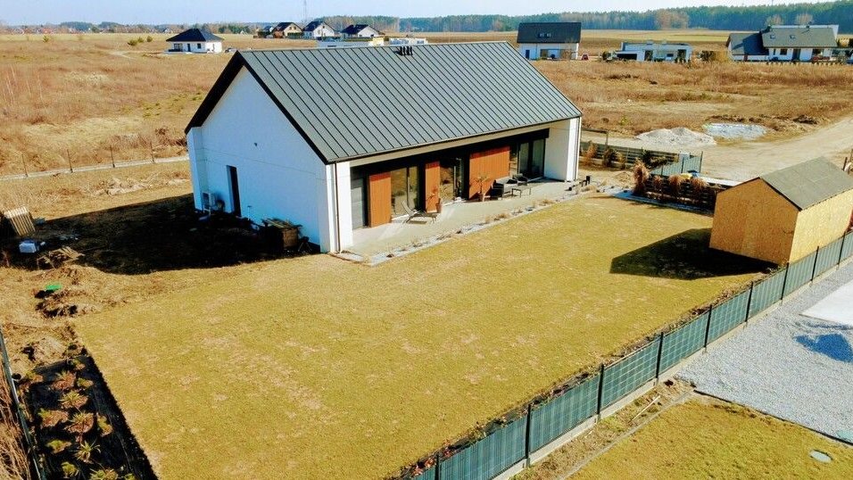 Nowoczesny dom parterowy z 2022 roku znajdujący się na obrzeżu Dąbrowy Chełmińskiej, na kameralnym osiedlu pod lasem, gotowy do zamieszkania, wykonany i wykończony wysokiej jakości materiałami.