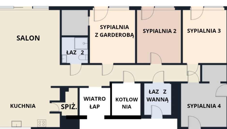- w korytarzu jakościowe drzwi bezprzylgowe