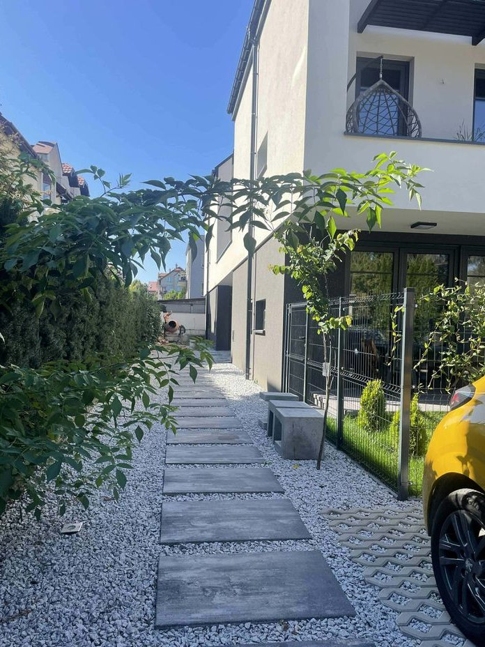 Na sprzedaż 2 połączone mieszkania tworzące dom-bliźniak, w kameralnej inwestycji w dzielnicy Dębniki Pychowice, tuż obok Zakrzówka. Dom jest trzykondygnacyjny, idealny dla rodziny 2+2. Dom w zabudowie bliźniaczej. Parter stanowi strefa dzienna z kuchnią i małą spiżarnią oraz jadalnią. W salonie możliwość podłączenia kominka gazowego. Z jadalni i kuchni jest wyjście do ogródka, z piwniczką ziemną i zaprojektowanym miejscem pod jacuzzi. Na pierwszym piętrze są dwa pokoje i łazienka, na poddaszu strefa otwarta, z wydzielonym salonem kąpielowym. Formalnie są to połączone dwa niezależne mieszkania, które w przyszłości w miarę potrzeb można bardzo łatwo rozdzielić i użytkować osobno. Budynek odebrany w grudniu 2023 roku, nowoczesny, wybudowany z pustaka YTONG, energooszczędny. Na poddaszu ocieplony pianką PUR, ogrzewanie podłogowe. Z uwagi na wentylację mechaniczną, budynek tani w utrzymaniu (mechanizm rekuperacji polega na odzysku ciepła z pomieszczeń). Ogrzewany nowoczesnym piecem gazowym z zamkniętą komorą spalania. Instalacja klimatyzacyjna ( splity do montażu we własnym zakresie). Budynek bardzo dobrze wyizolowany grafitowym styropianem o grubości 20 cm. Piękny, nowoczesny tynk. Materiały stosowane w budowie z najwyższej półki ( nie był budowany z zamiarem sprzedaży tylko zamieszkania). Dom jest w stanie deweloperskim plus, ale za dopłatą jest możliwość wykończenia domu pod klucz. Pychowice to jedno z najatrakcyjniejszych rejonów Krakowa, nie tylko ze względu na bliską lokalizację Zakrzówka i Parku- Skałek Twardowskiego, ale również ze względu na kameralność osiedla i bliskość zaplecza niezbędnego do codziennego funkcjonowania (sklepy, apteki, przychodnie, baseny, szkoły, przedszkola). W cenie dwa miejsca postojowe, całość ogrodzona. Wizualizacje na podstawie projektu w celu pokazania potencjału domu. Zapraszam na prezentację