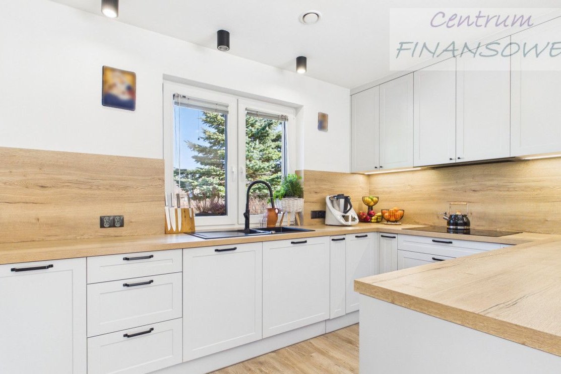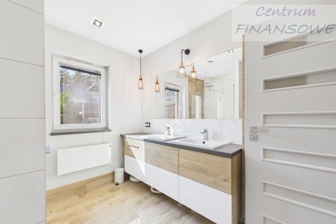 • w całym domu zastosowano funkcjonalne zabudowy stolarskie na wymiar, z wysokiej jakości materiałów, a dodatkowe elementy, takie jak kominek w zabudowie szamotowej (komin systemowy z wkładem ceramicznym - zabudowa zewnętrzna gres i marmur), automatyczna brama garażowa, instalacja filtracji wody czy zagospodarowanie terenu (kostka brukowa, taras, ogrodzenie), podnoszą komfort użytkowania i walory estetyczne nieruchomości.