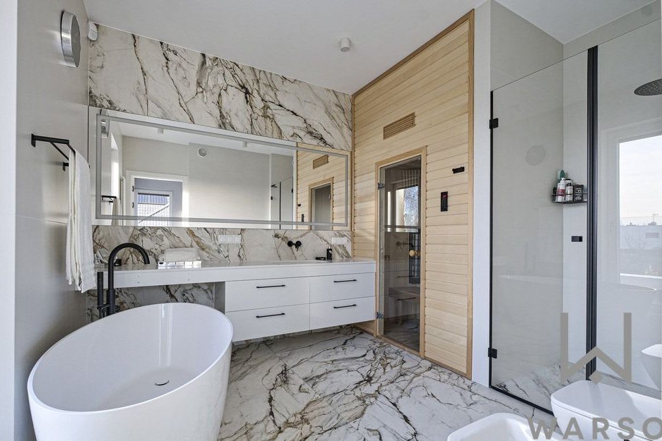 - sypialnię typu Master z prywatną łazienką wyposażoną w wolnostojącą wannę, duży prysznic oraz saunę, a także własną, pojemną garderobę,