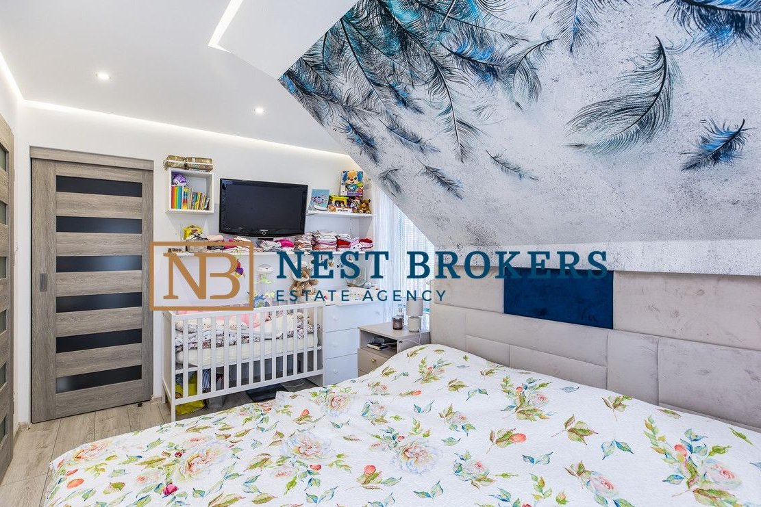 Trzy ustawne sypialnie - w tym jedna z wydzieloną garderobą oraz jedna z zabudowanymi szafkami w skosach.
