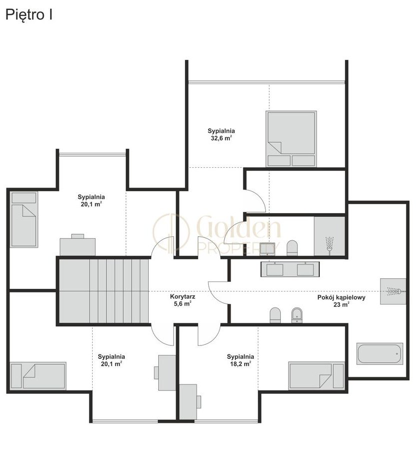 Piętro to prywatna strefa domowników, zaprojektowana z myślą o komforcie i prywatności: