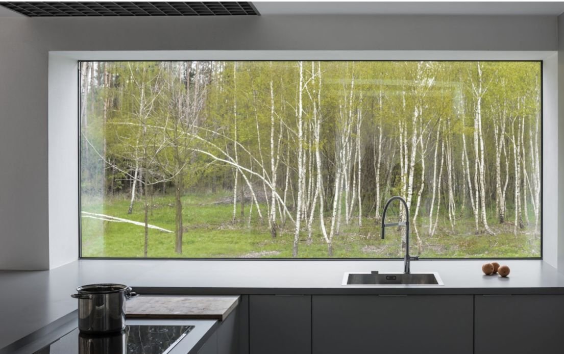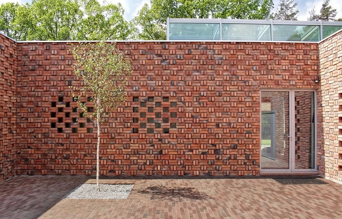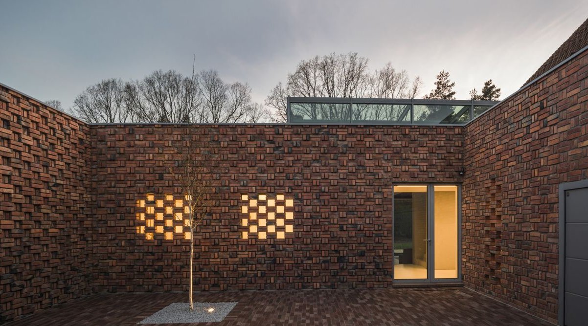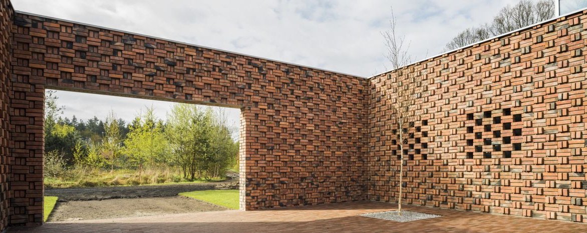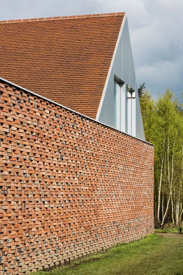 Wykonany z czerwonej opalanej cegły, od strony zachodniej posiada duże okna skierowane na las zapewniające mnóstwo naturalnego światła i piękny widok.