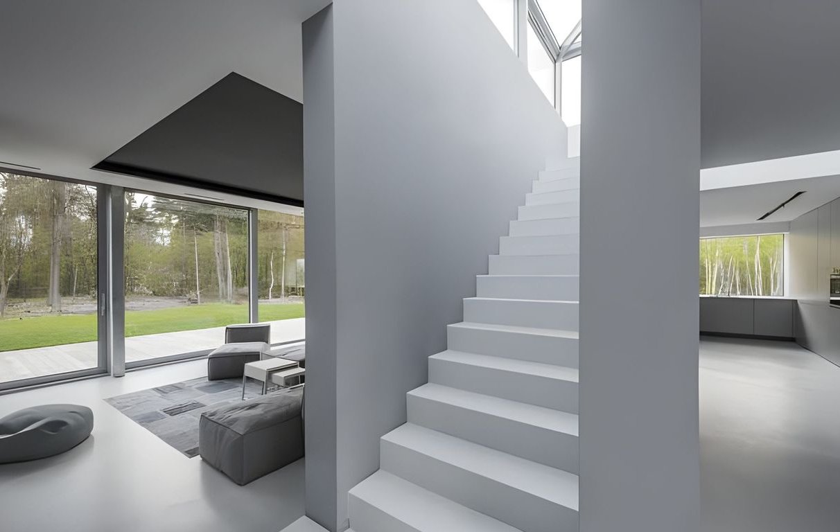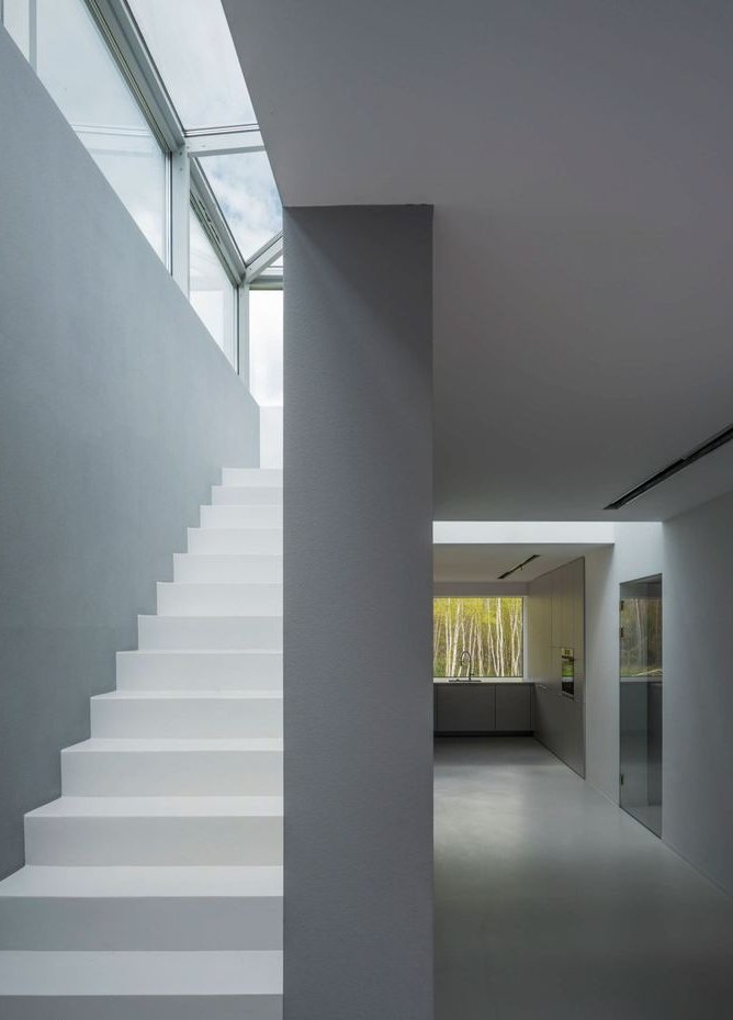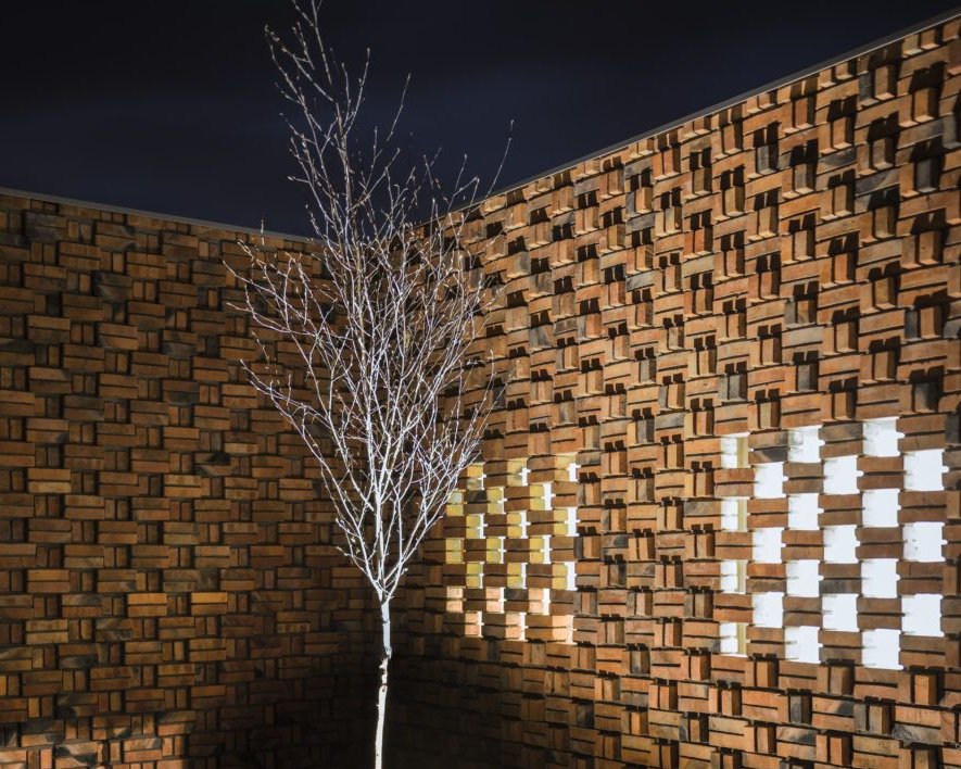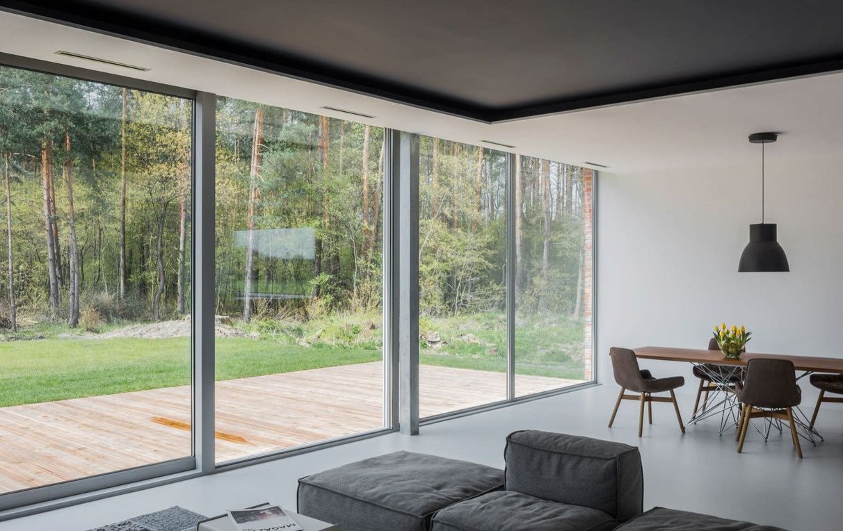 Wykonany z czerwonej opalanej cegły, od strony zachodniej posiada duże okna skierowane na las zapewniające mnóstwo naturalnego światła i piękny widok.