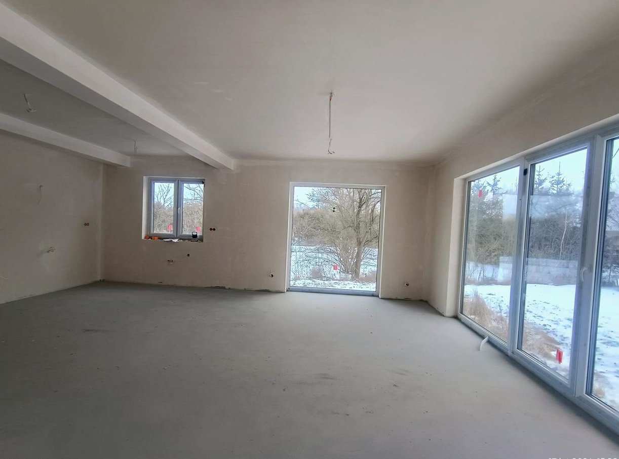 Istnieje możliwość wykończenia budynku przez dewelopera do stanu deweloperskiego, czyli ocieplenie elewacji, otynkowanie budynku z zewnątrz, pokrycie dachu nad garażem, ocieplenie dachu domu i garażu, balustrady balkonowe - profile ze stali nierdzewnej. Montaż kotła grzewczego. Koszt wykończenia to 200 000 zł.