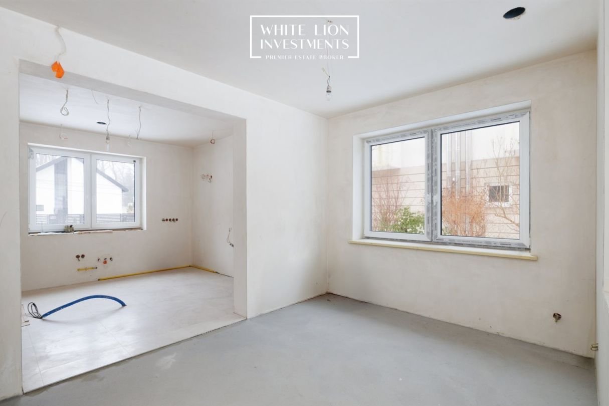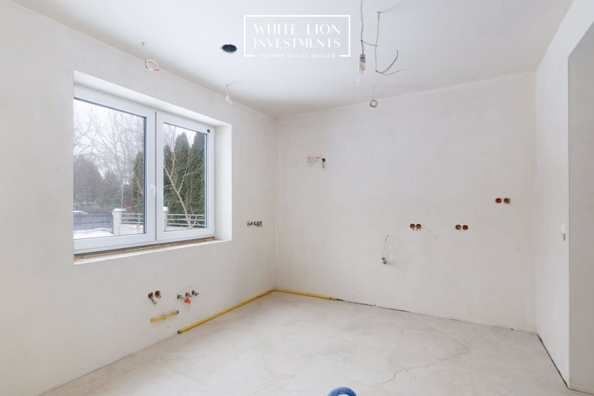Nieruchomość obecnie jest w stanie surowym zamkniętym co pozwala na nieograniczoną koncepcje aranżacyjną. Zastosowono nowoczesne rozwiązania typu rekuperacja, panele fotowoltaiczne, system rozprowadzania wód nadmiarowym z działki a także nowoczesny piec gazowy z zasobnikiem wody. Dużym autem jest fakt wykonania oddanych do użycia wszystkich toalet i łazienek co znacząco obniży koszt nowemu właścielowi.