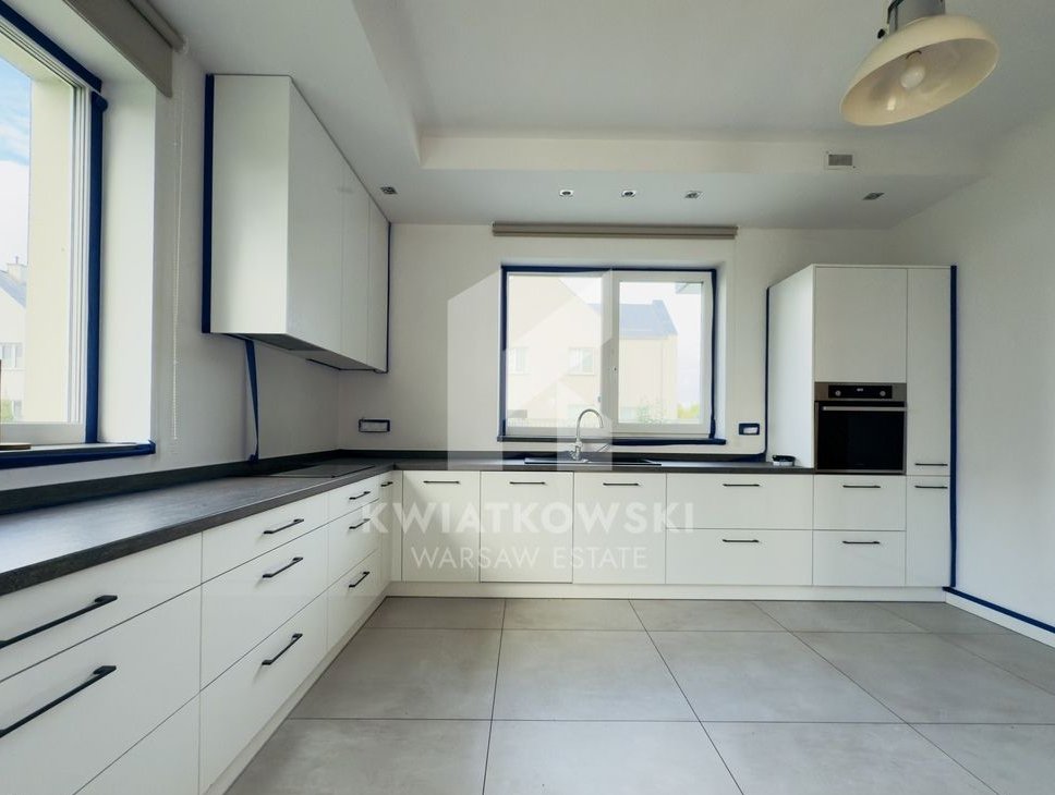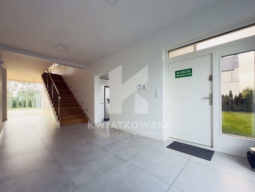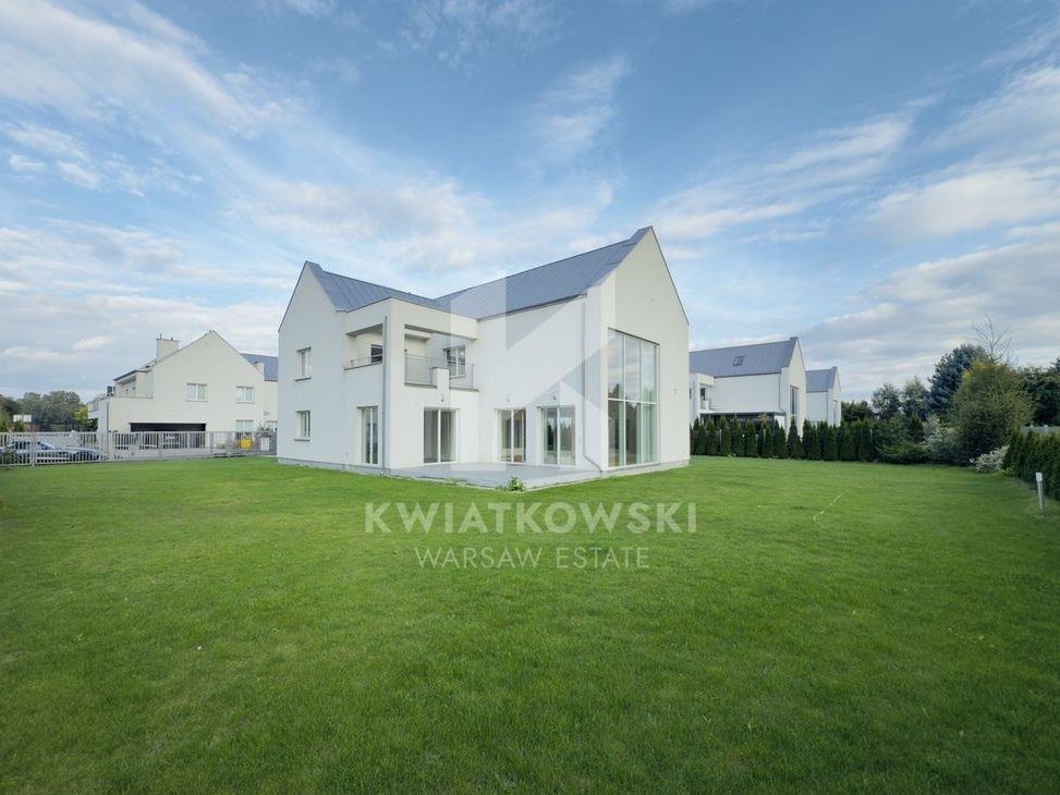 For sale: an elegant house with an area of approx. 400 m², located in a quiet and prestigious part of Wilanów – Zawady, within an intimate residential estate of single-family homes. The property has been finished to a high standard using natural materials and kept in a neutral, timeless color palette.