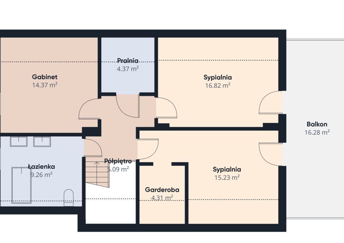 - Pralnia, zapewniająca komfort organizacji domowych obowiązków,
