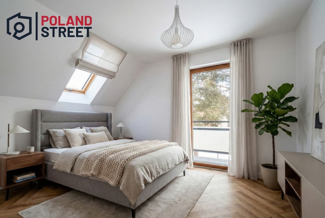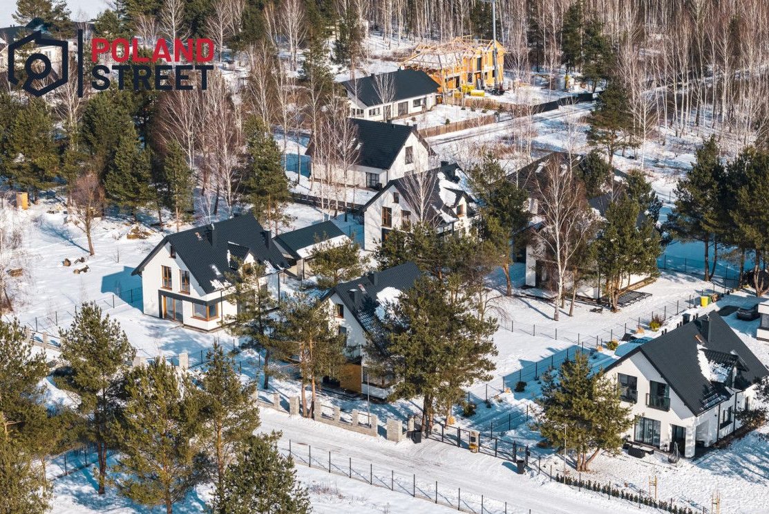 Parametry techniczne: pompa ciepła, okna 3-szybowe, dach kryty blachodachówką.