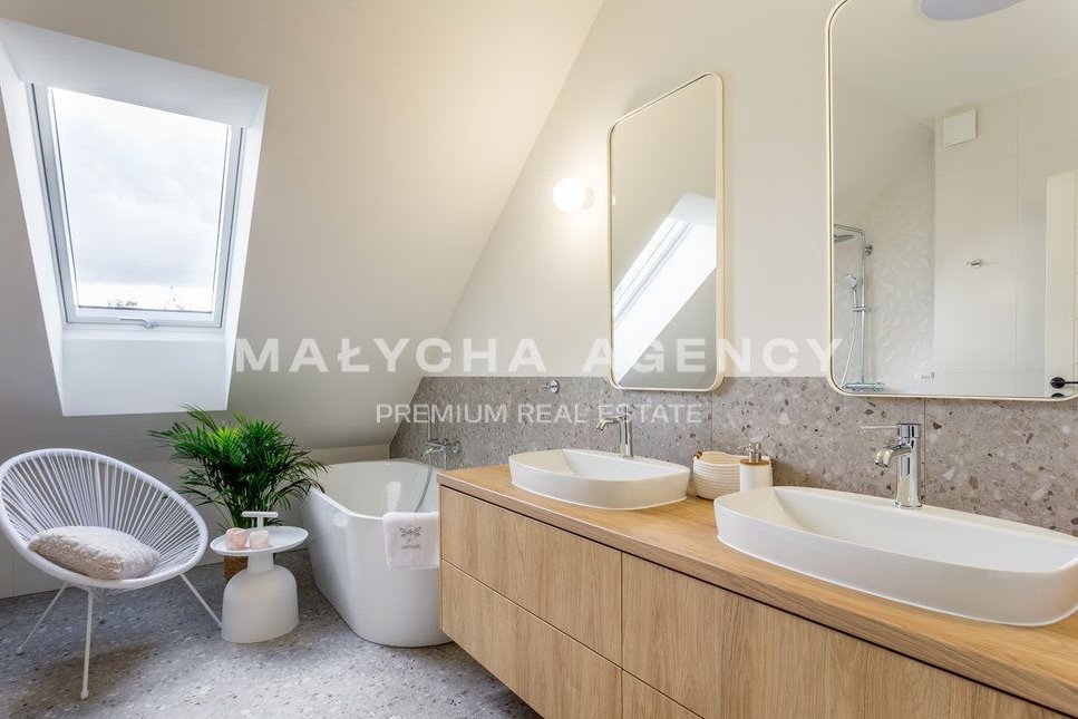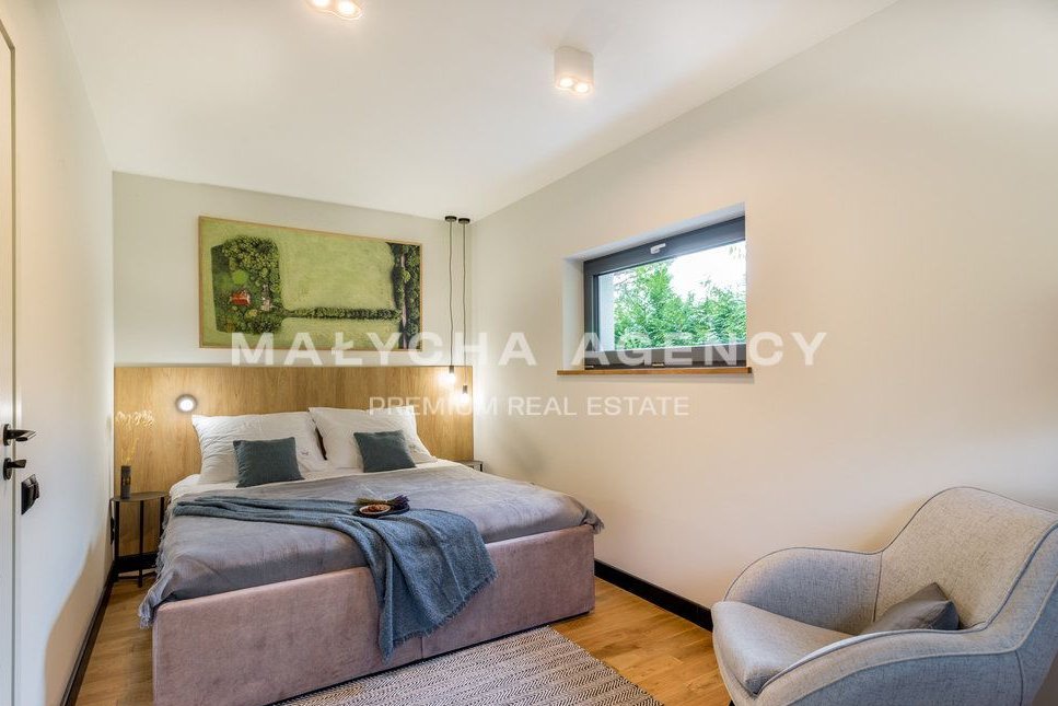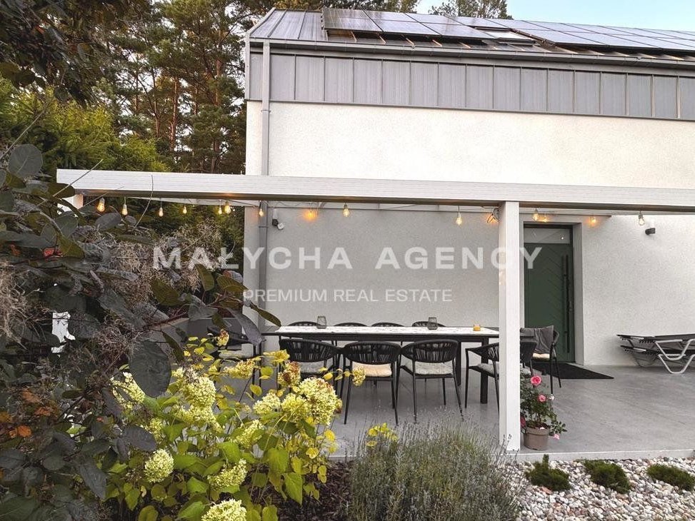 Dom stoi na działce o powierzchni 597 m² przy kameralnej uliczce zabudowanej domami jednorodzinnymi. Został zbudowany w 2022 roku zgodnie z najwyższymi standardami takimi jak klimatyzacja, pompa ciepła, instalacja fotowoltaiczna, automatyczne podlewanie ogrodu, szybki internet światłowodowy.