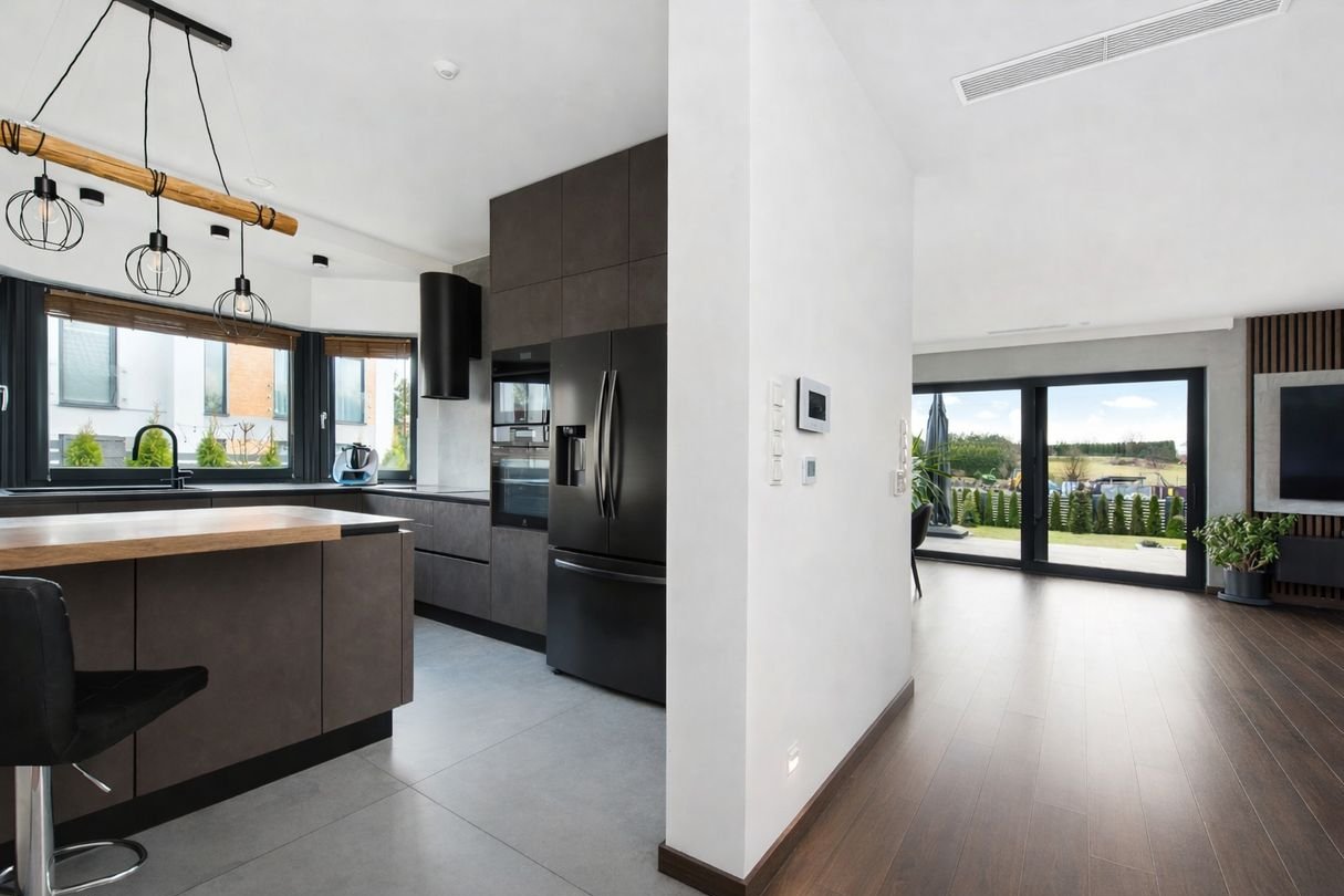 ◦ sterowane ogrzewanie podłogowe w całym domu, włącznie z garażem