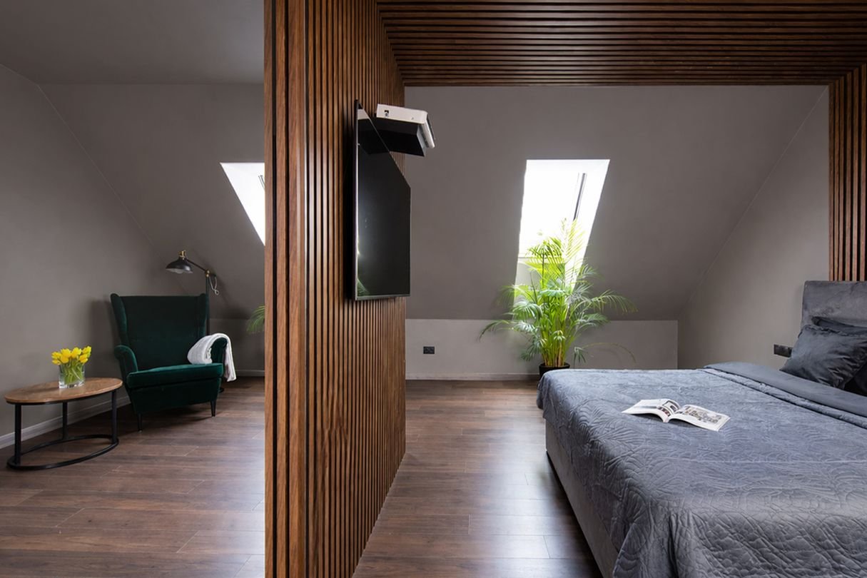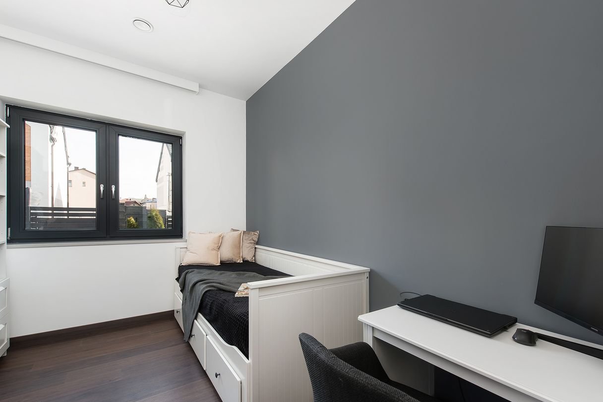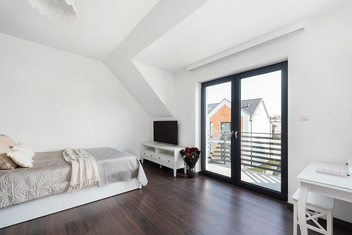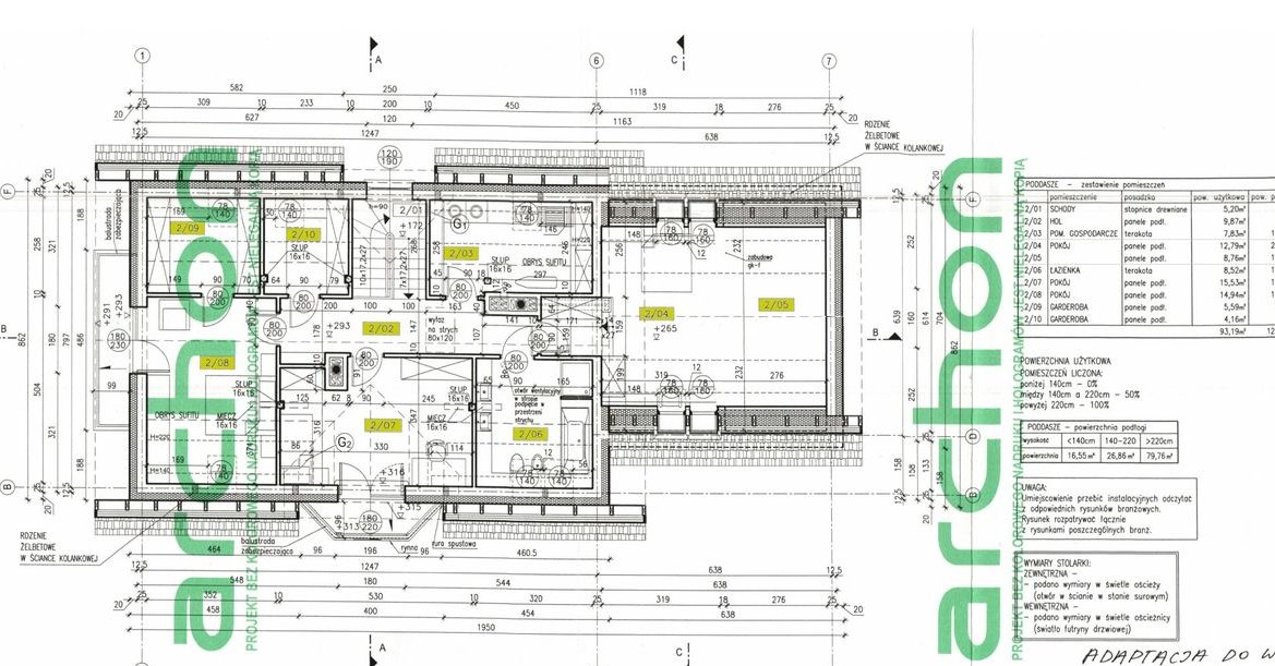 Poddasze ( 93,19 m2): 3 pokoje (w tym 1 z garderobą), garderoba, łazienka, pralnia, hol