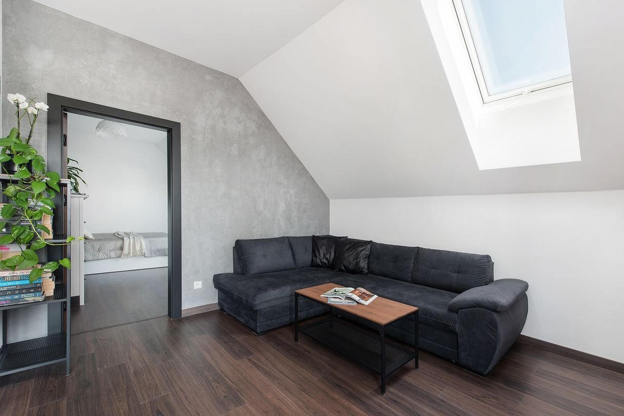 ◦ strych ocieplony dodatkowo od wewnątrz pianą PUR, wykończony płytami osb