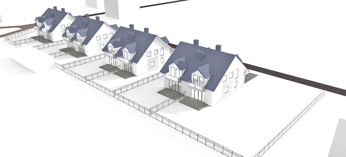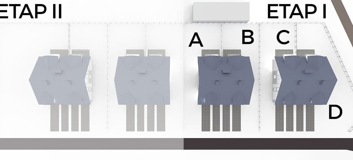 ETAP I - składa się z czterech domów w zabudowie bliźniaczej z działką od ~338m2 do ~380m2. Etap pierwszy inwestycji jest już w realizacji.