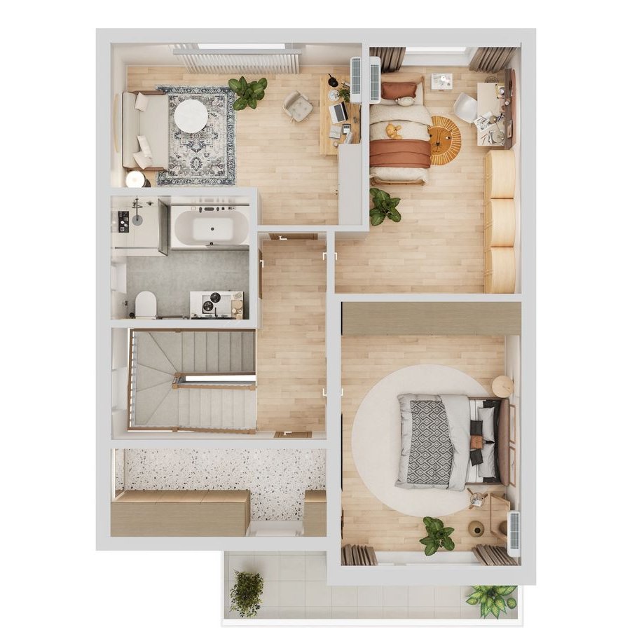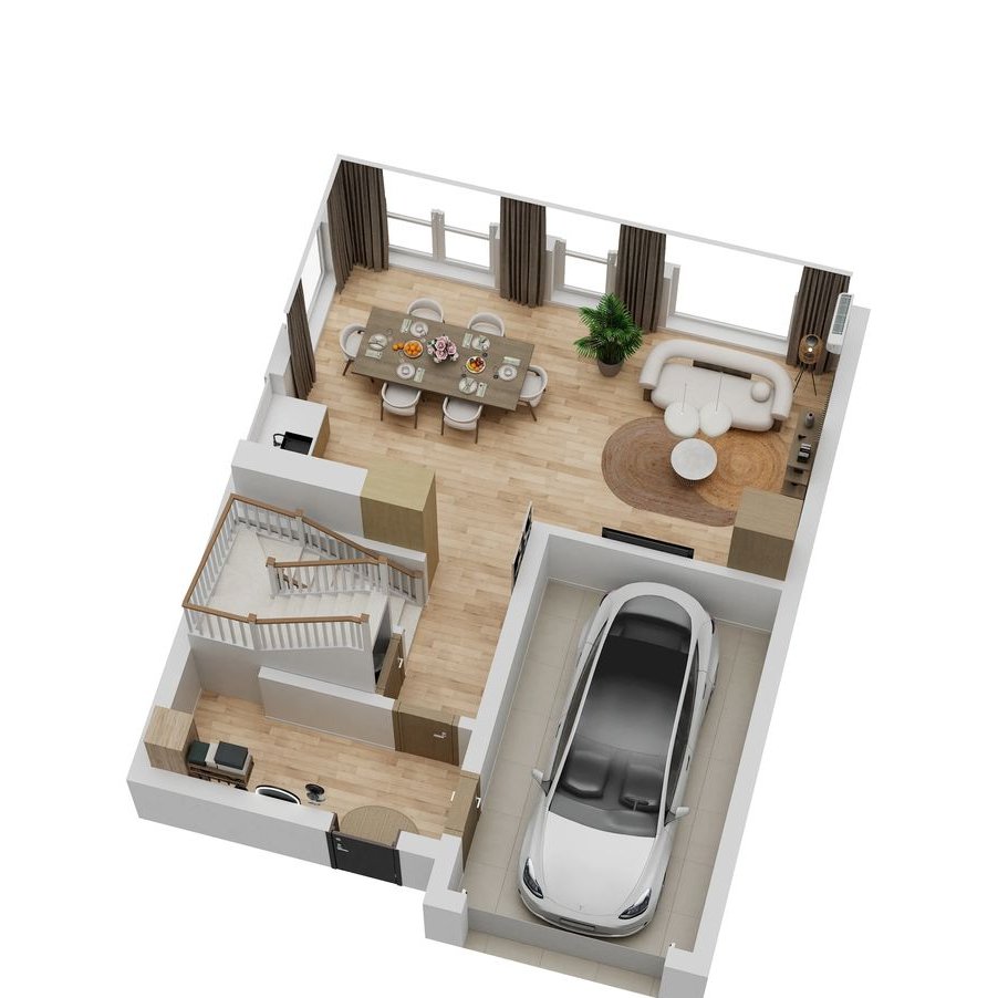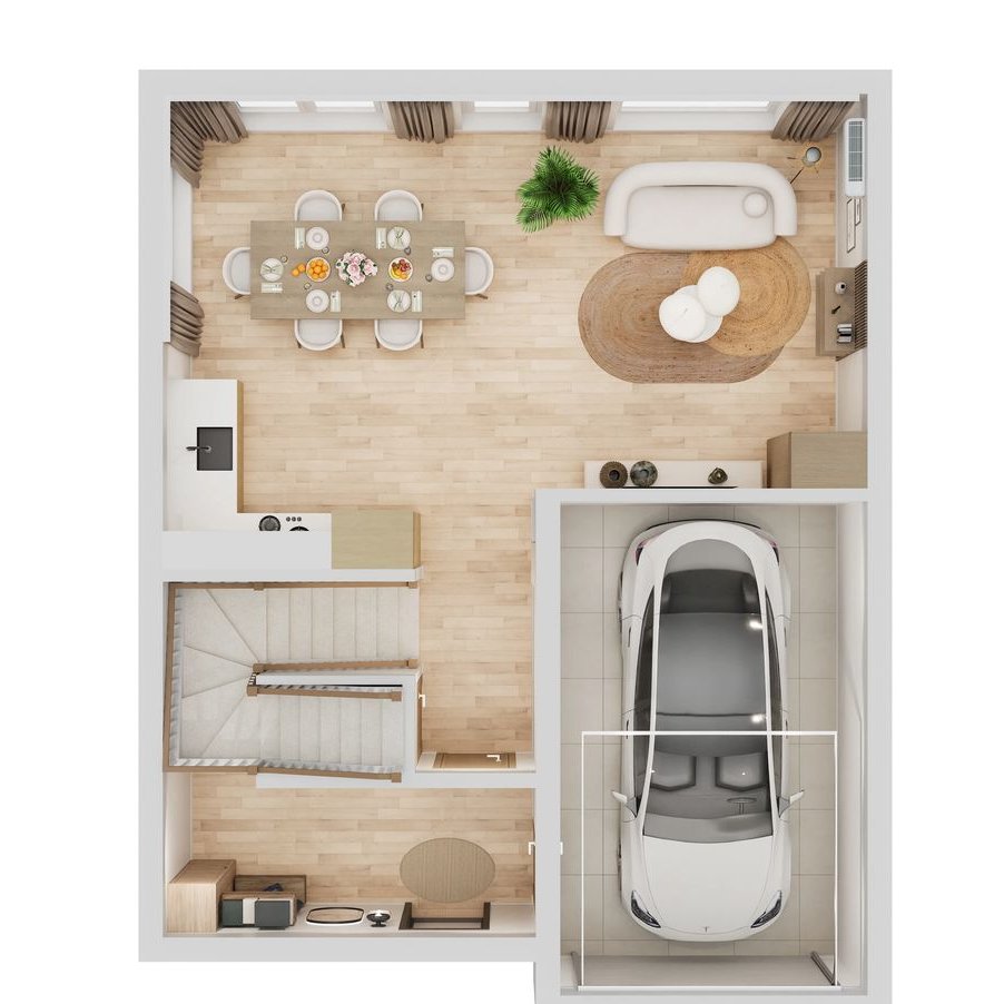 Każdy dom ma 119,77 m² funkcjonalnej powierzchni, pełne kondygnacje bez skosów oraz świetnie doświetlone wnętrza. To idealny układ dla ludzi, którzy cenią komfort i praktyczne rozwiązania.