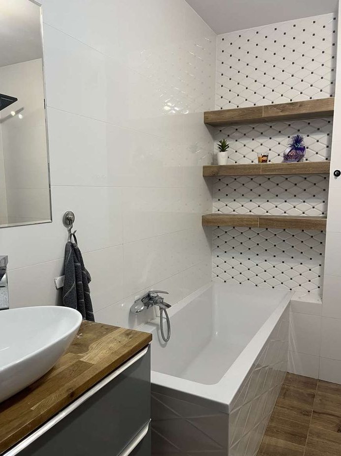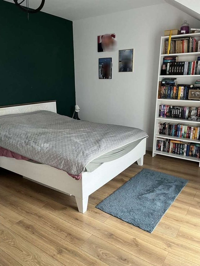3 pokoje ( 14.5m2 wraz z garderobą, 14m2, 10m2), łazienka 6.5m2