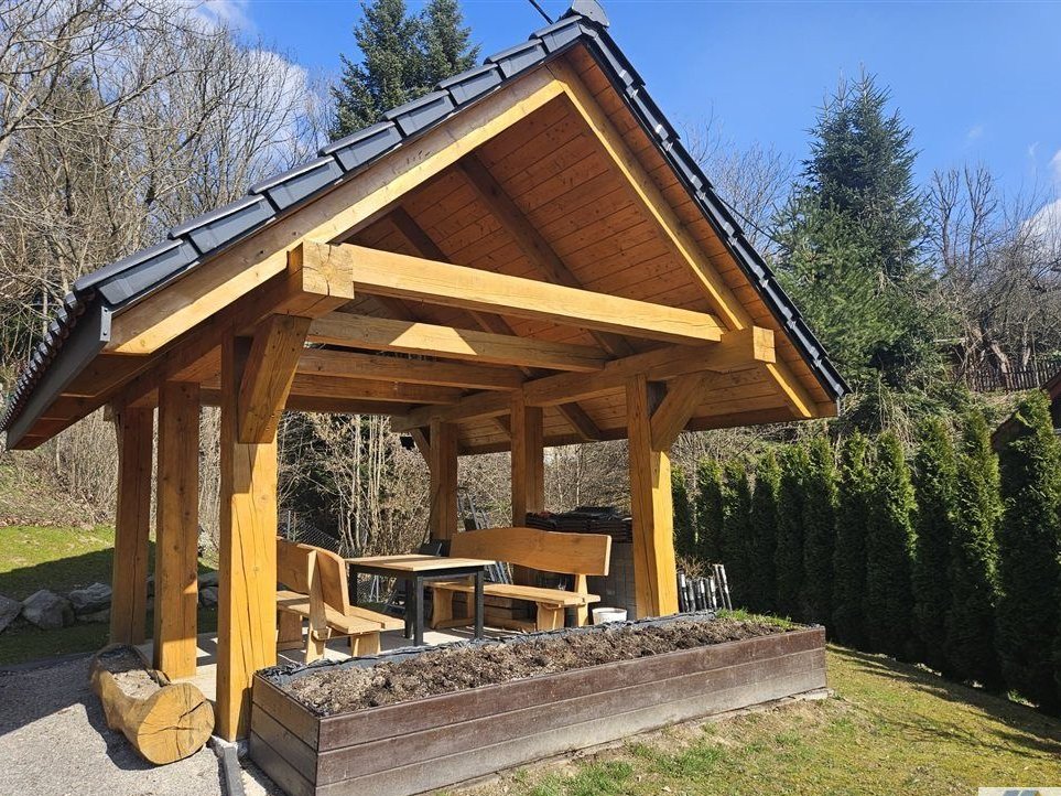 2. Od strony północnej komfortowe miejsce na wspólne biesiadowanie - piękna altana, oczko wodne, liczne nasadzenia krzewów.