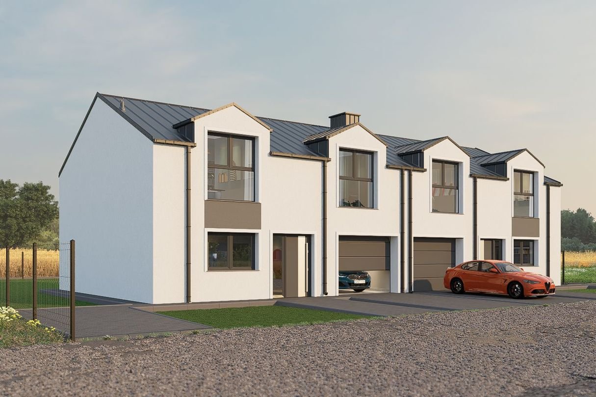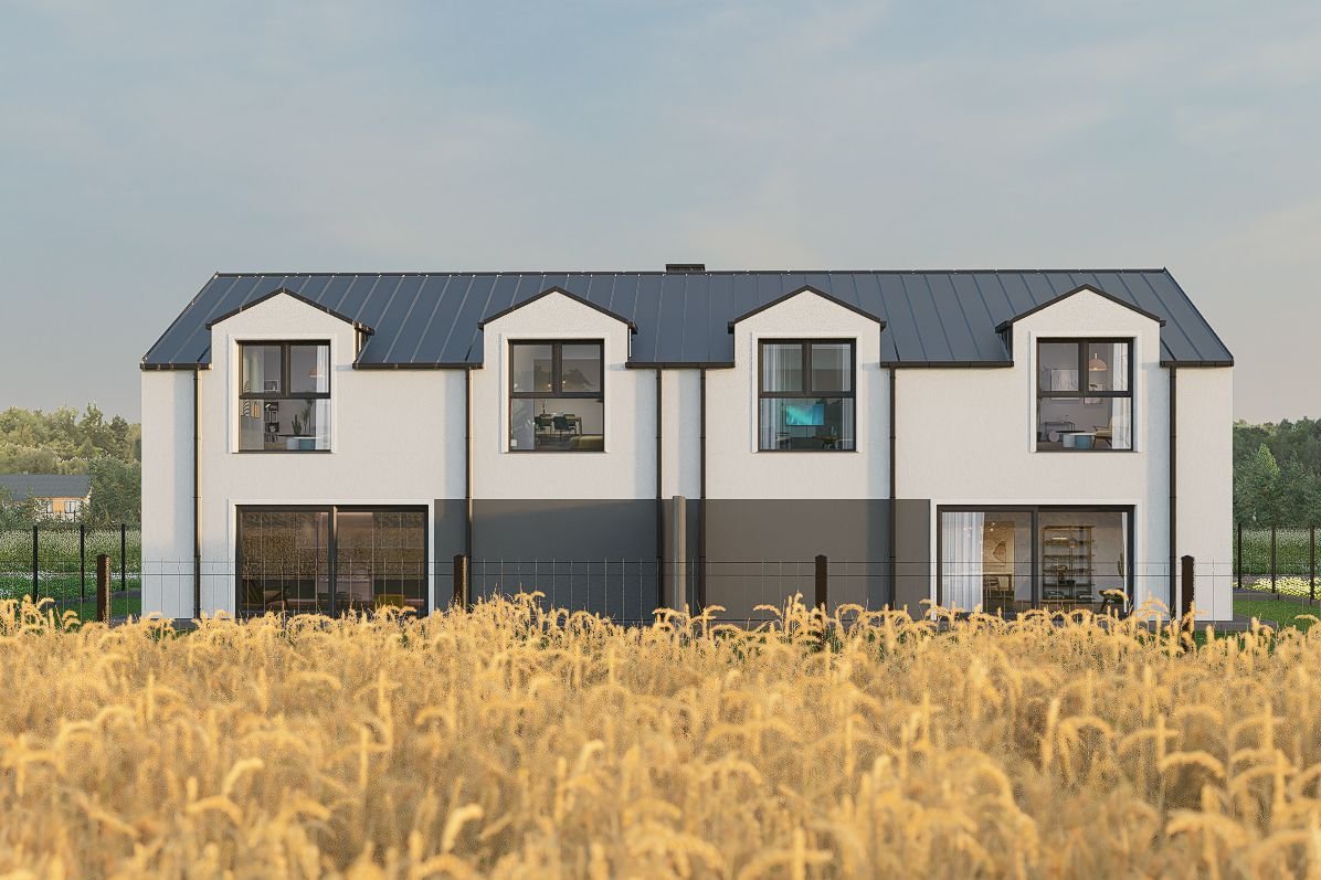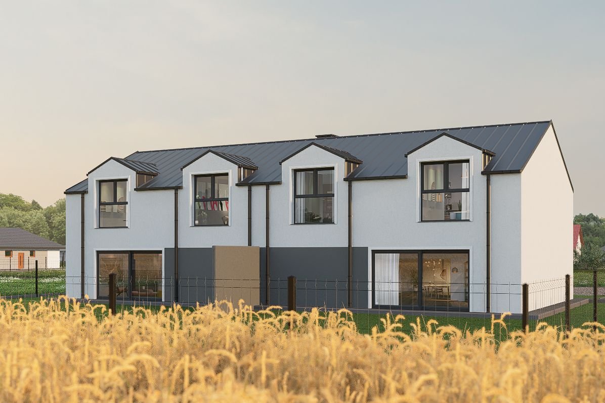 Każdy lokal to niezależna część budynku z własnym garażem, ogródkiem i infrastrukturą. Podwójna ściana konstrukcyjna (50 cm + dylatacja) gwarantuje prywatność i świetną izolację akustyczną.