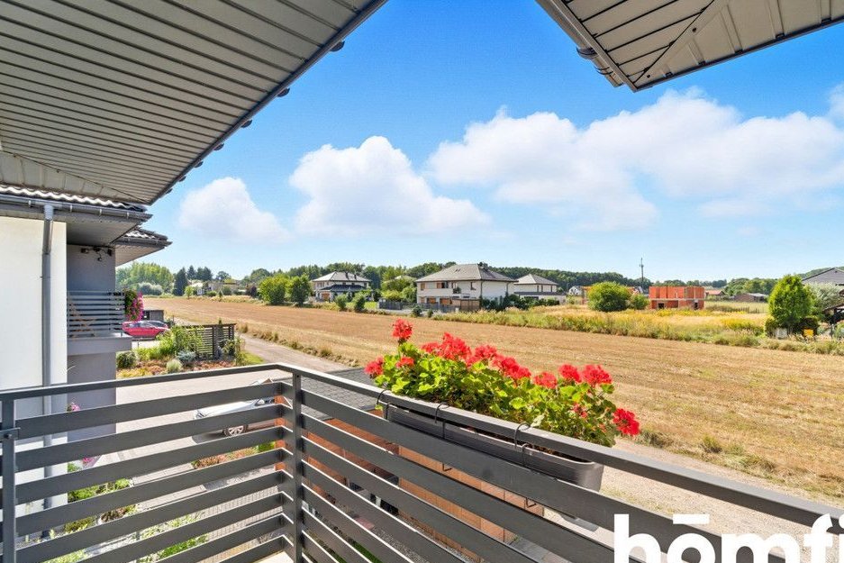 The house sits on a 371 m² rectangular plot, guaranteeing privacy and easy amenity. The terrace and green garden create an ideal space for family gatherings, morning coffee overlooking the fields, or evening relaxation in the privacy of your own property. A garage within the building, two parking spaces in front of the house, and a balcony complete the picture of a comfortable lifestyle.