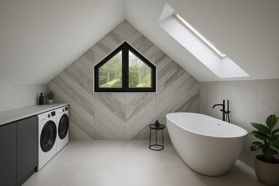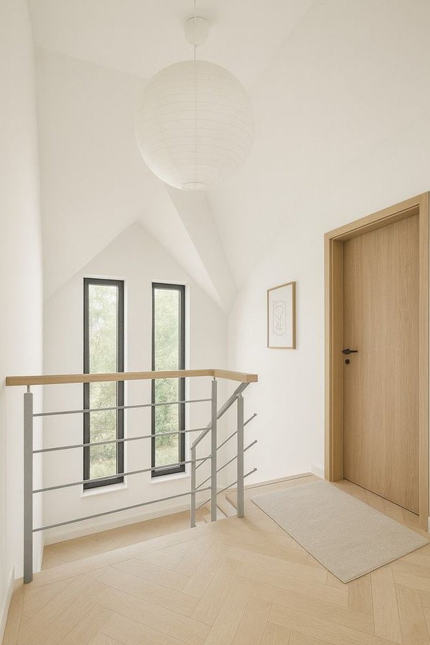 • nowoczesne przeszklenia – połączenie okien pionowych i połaciowych (w skosach dachu), zapewniające dużo naturalnego światła